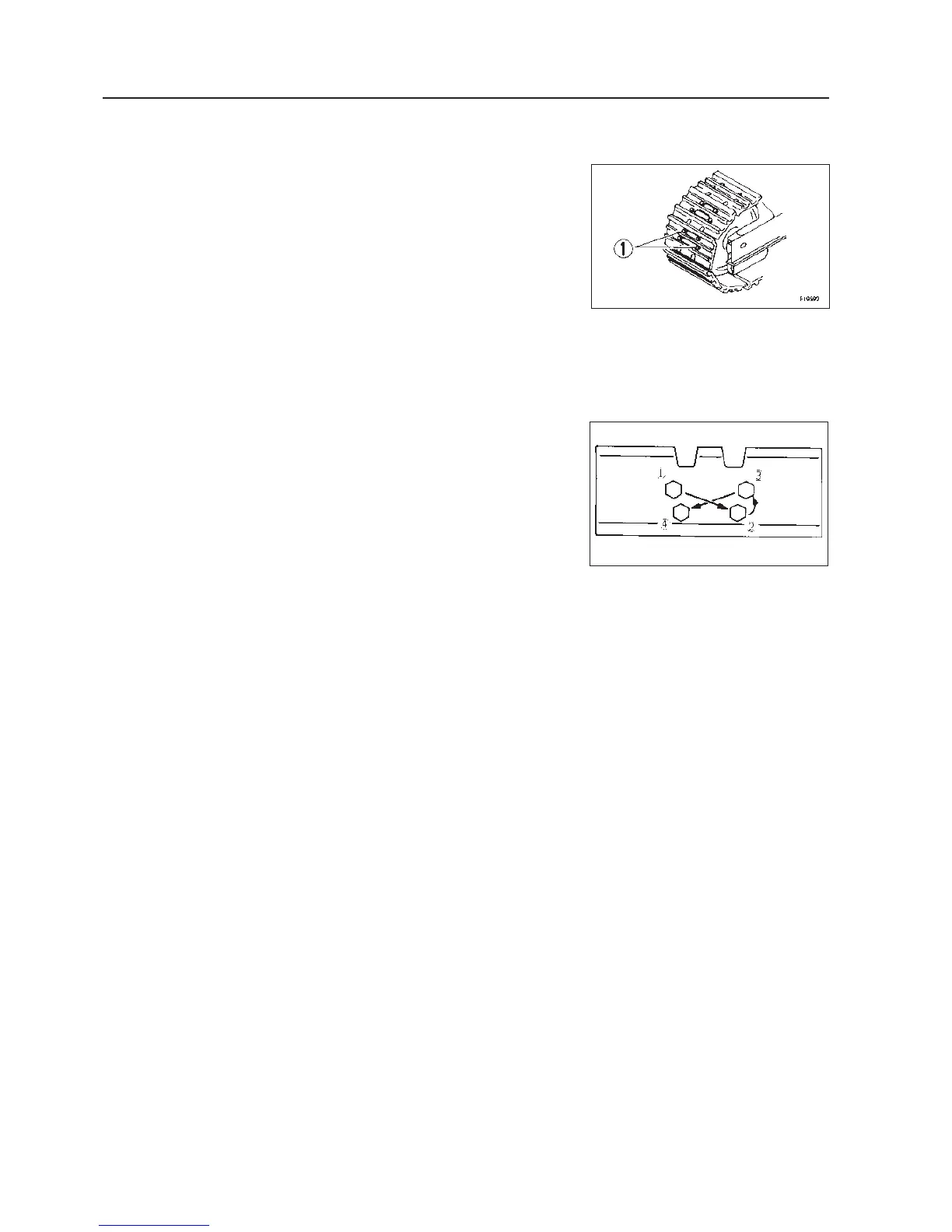 1. Tighten first to a tightening torque of 390 ± 40 Nm (40 ± 4 kgm, 290