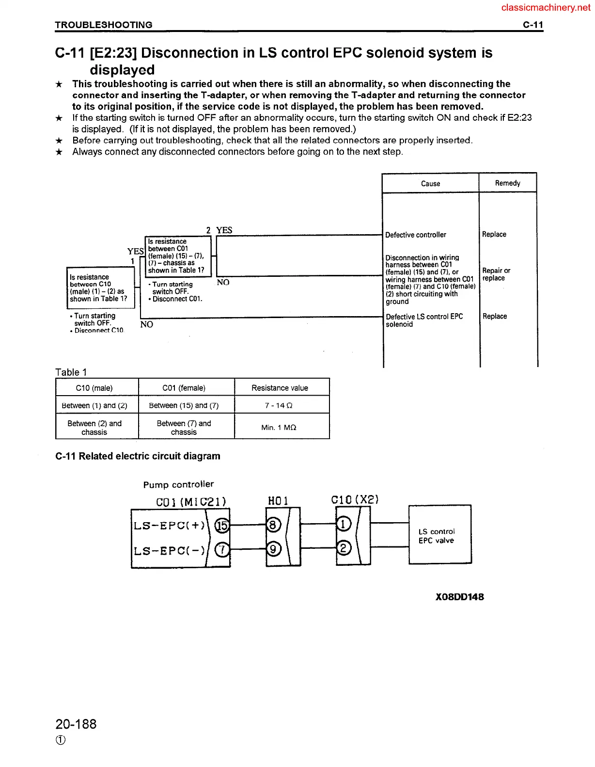 C-II [E2:23] Disconnection in LS control EPC solenoid system is