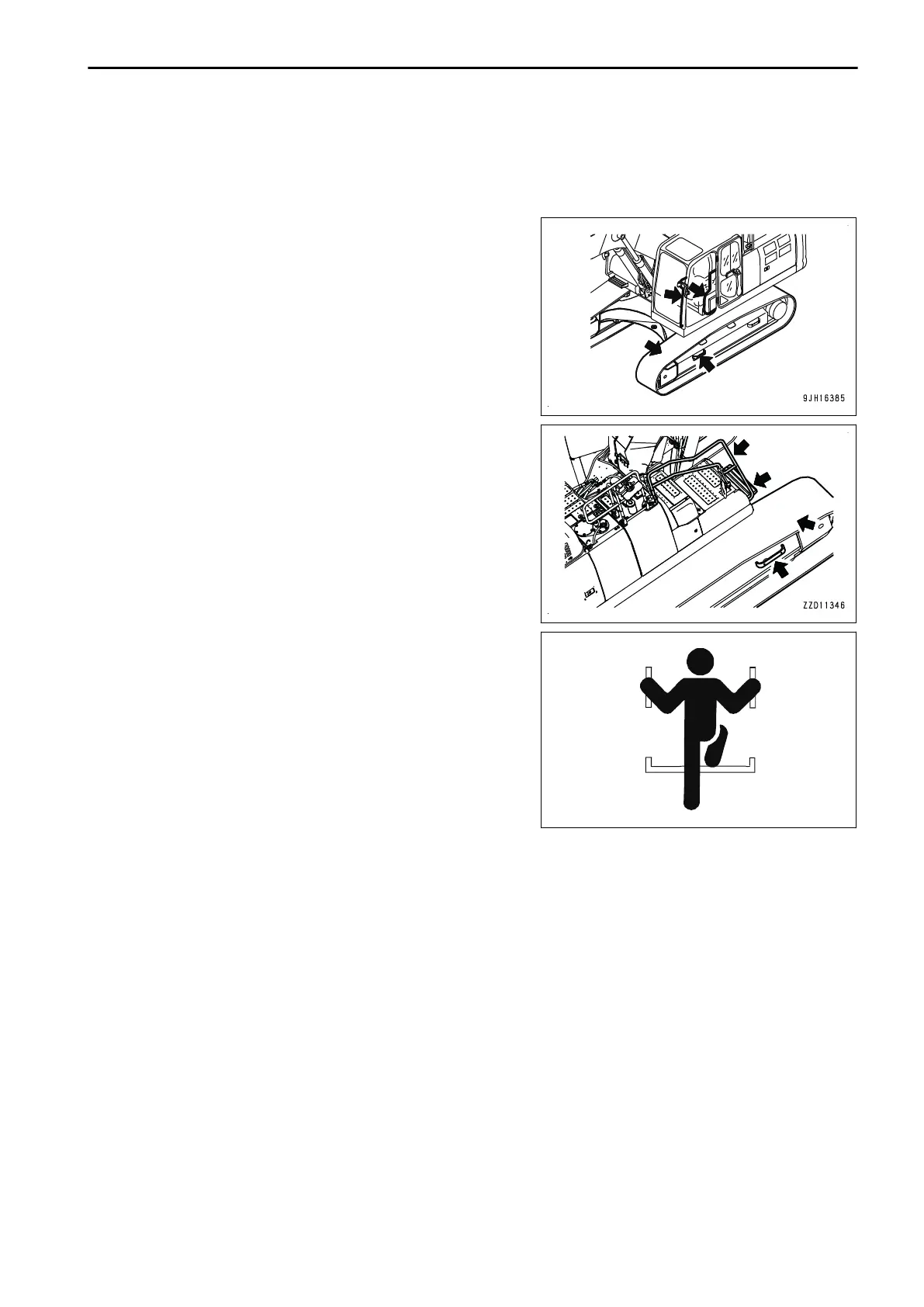 • If the machine starts to move when there is no operator on the machine, do not jump on to the machine and
