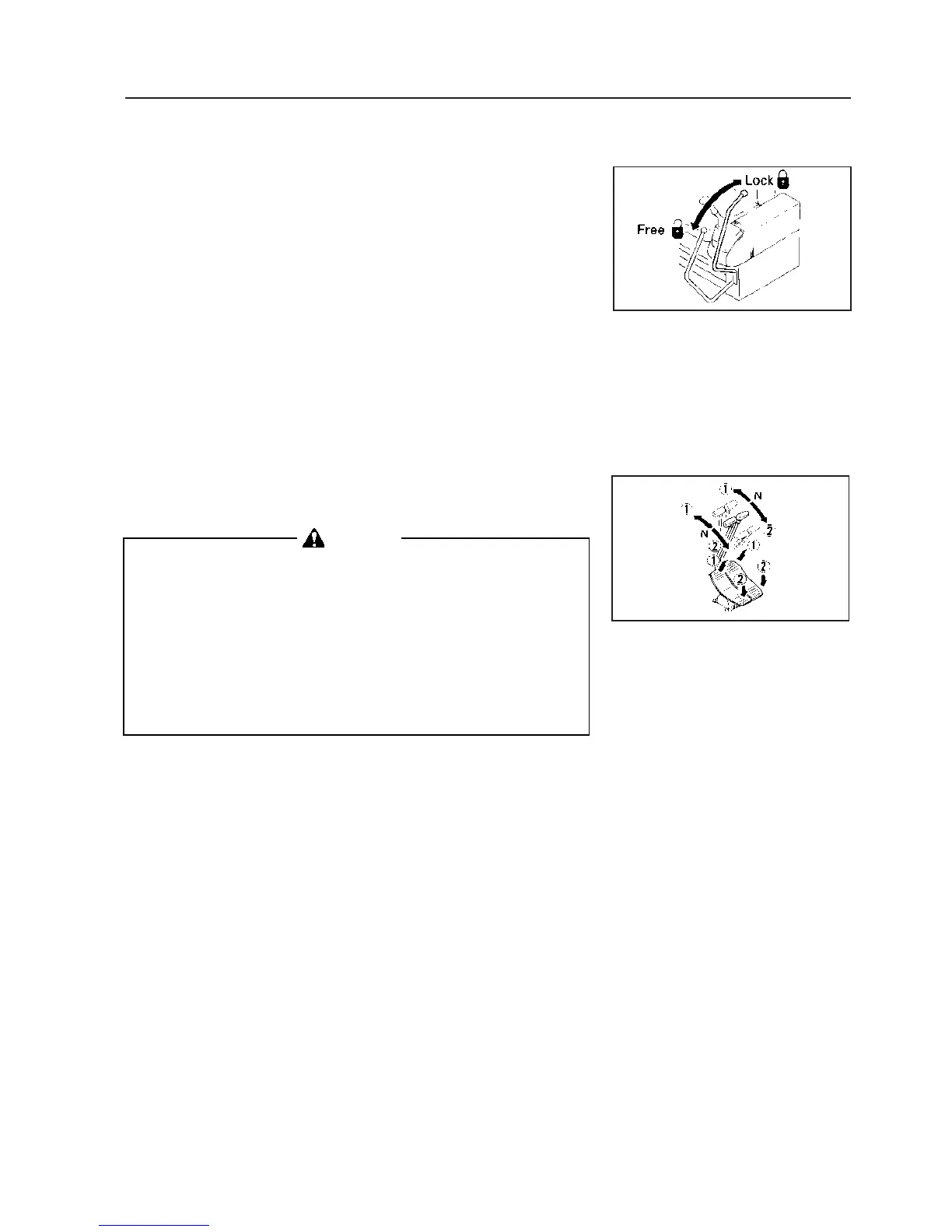 • Do not put your foot on the pedal unless the machine is travel-