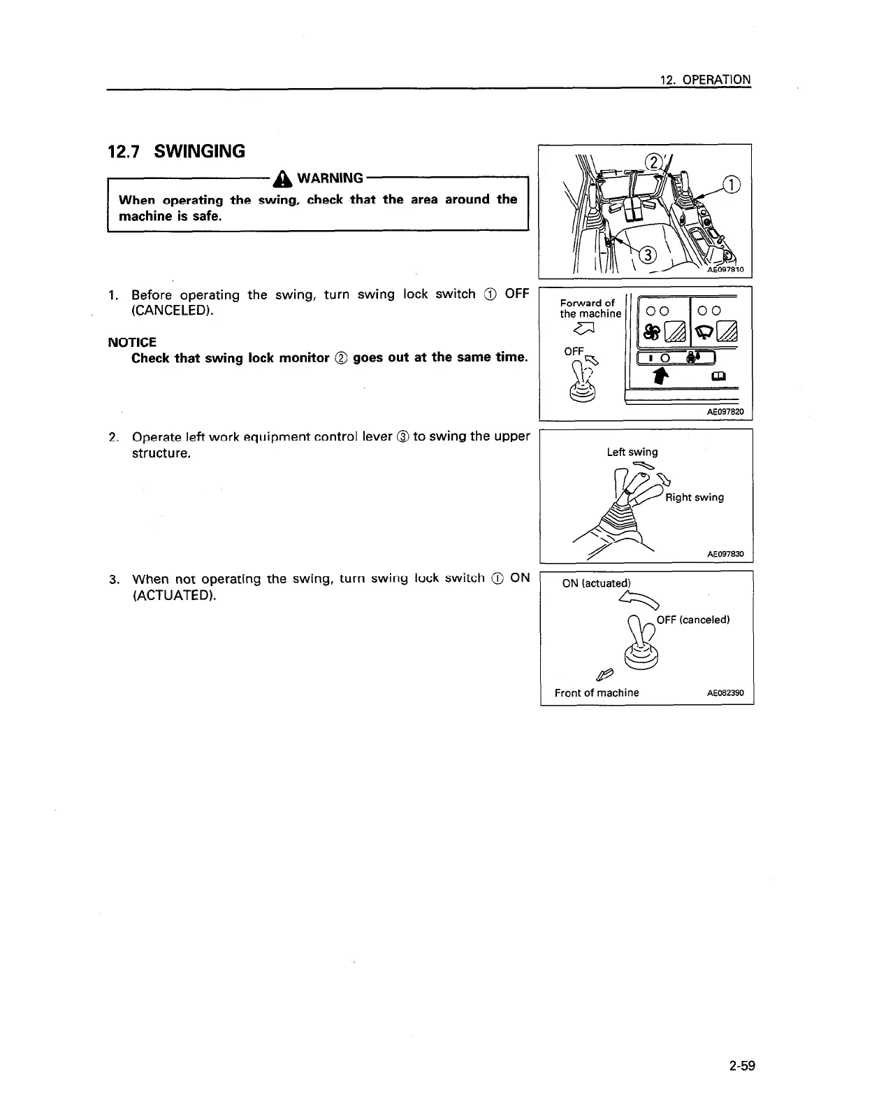 3. When not operating the swing, turn swing lock switch @ ON