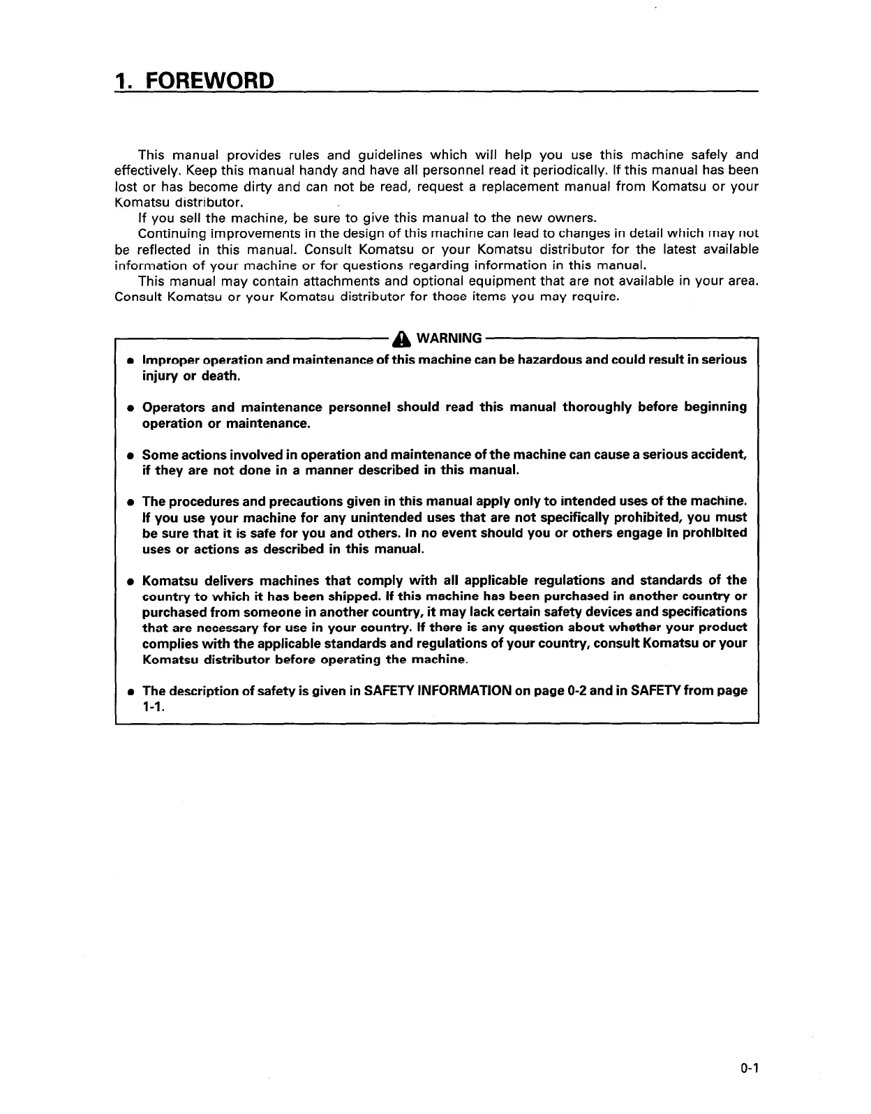lost or has become dirty and can not be read, request a replacement manual from Komatsu or your