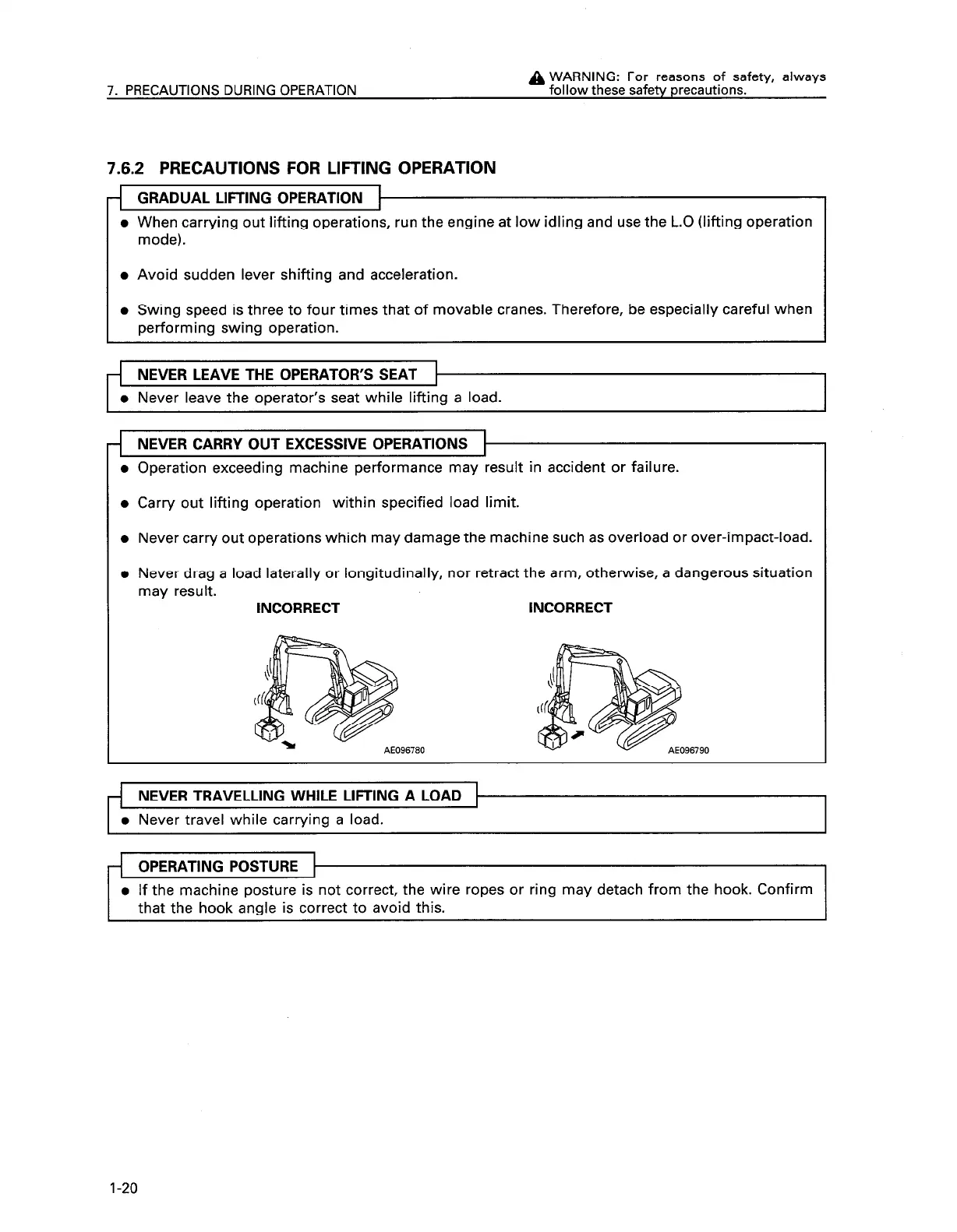 7.6.2 PRECAUTIONS FOR LIFTING OPERATION