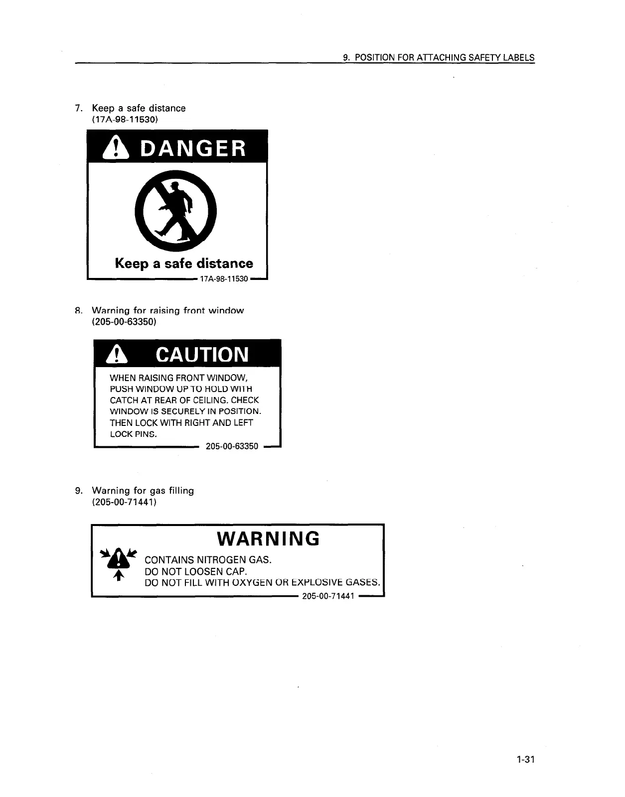 9. POSITION FOR AlTACHlNG SAFETY LABELS