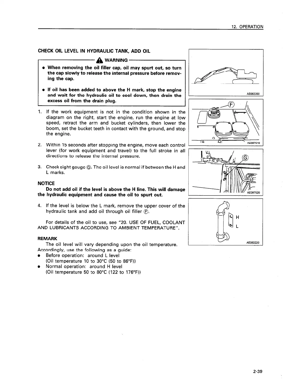 For details of the oil to use, see “20. USE OF FUEL, COOLANT