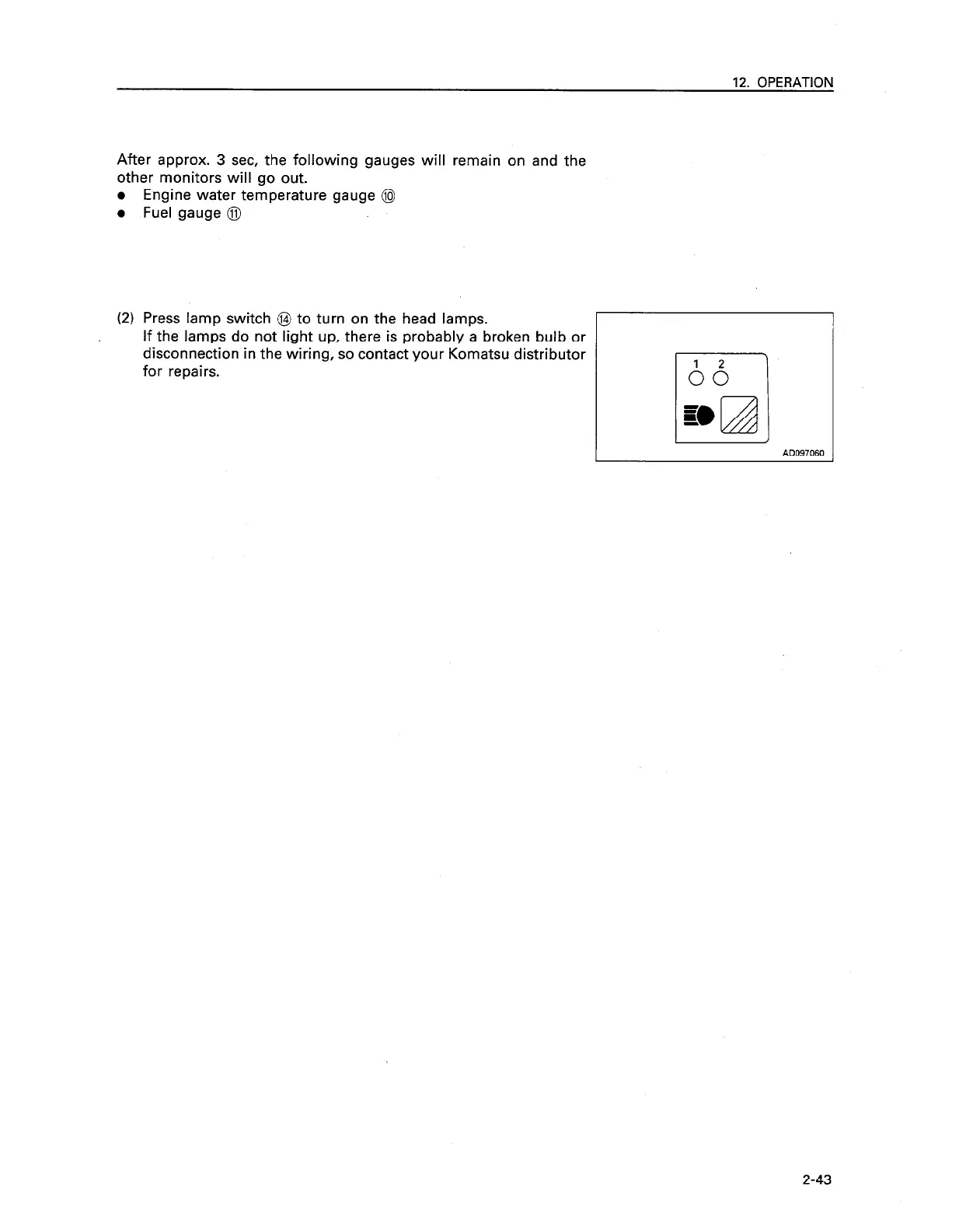 Press lamp switch @ to turn on the head lamps.