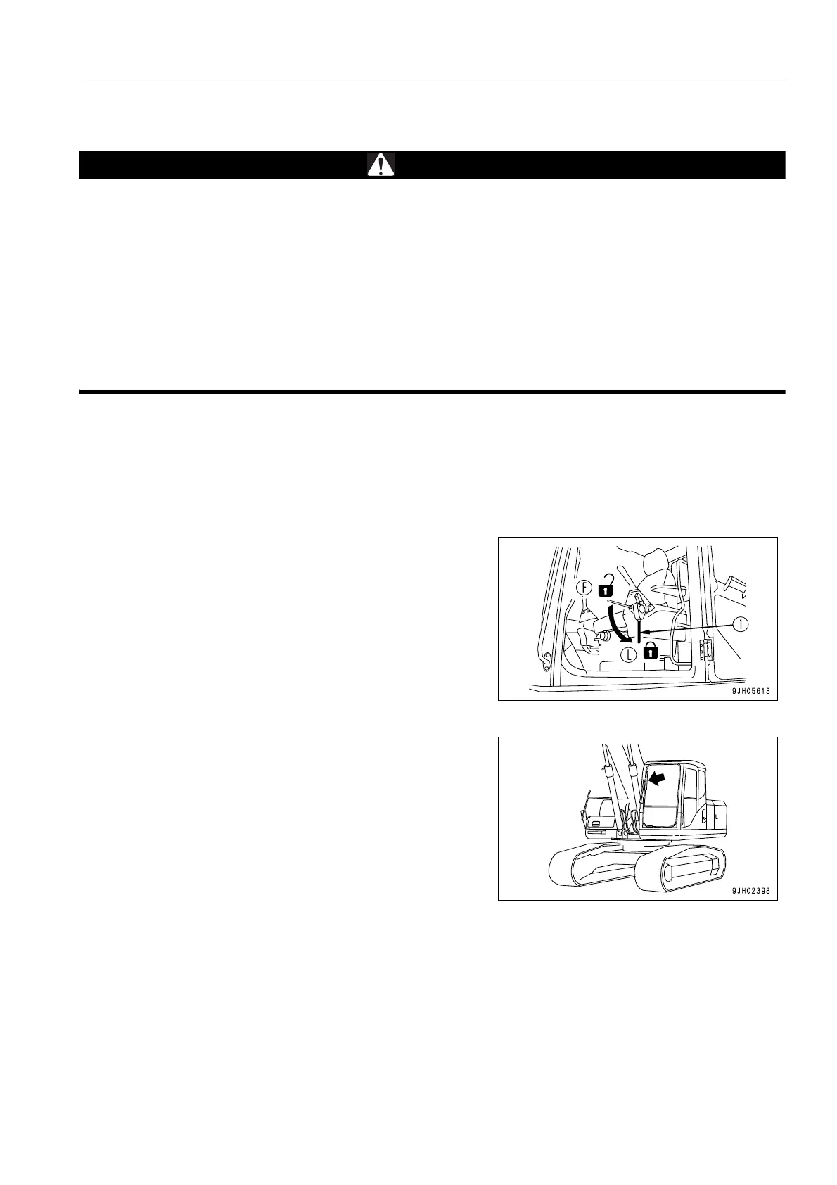q When opening or closing the front window, stop the machine on horizontal ground, lower the work