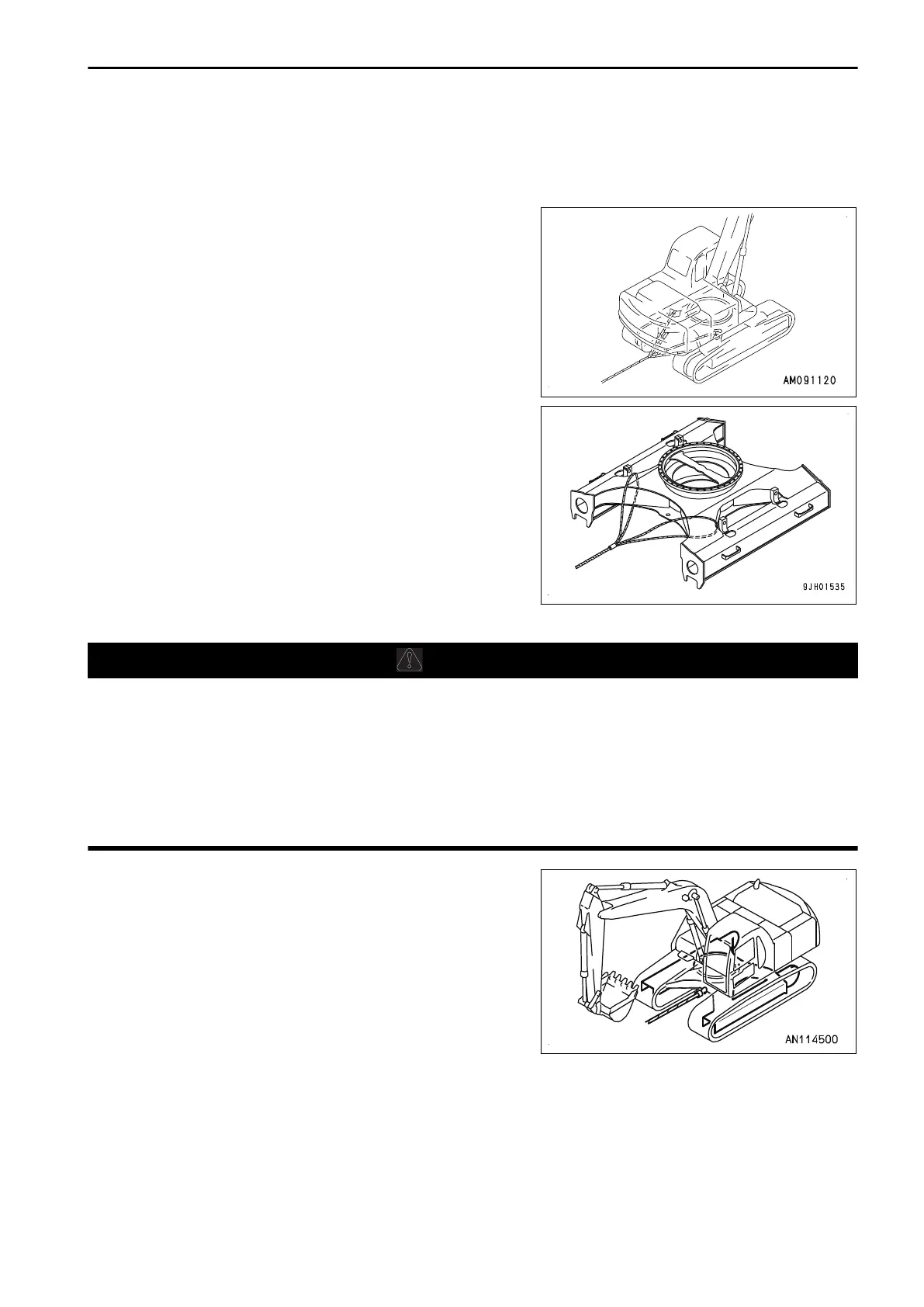 • Move the machine slowly and be careful not to apply any sudden load to the wire rope.