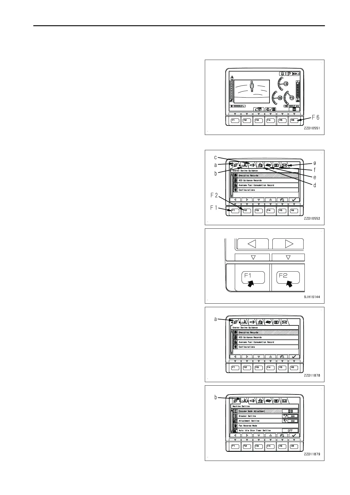 F1 and F2 to move to right and left for selecting menu screens.