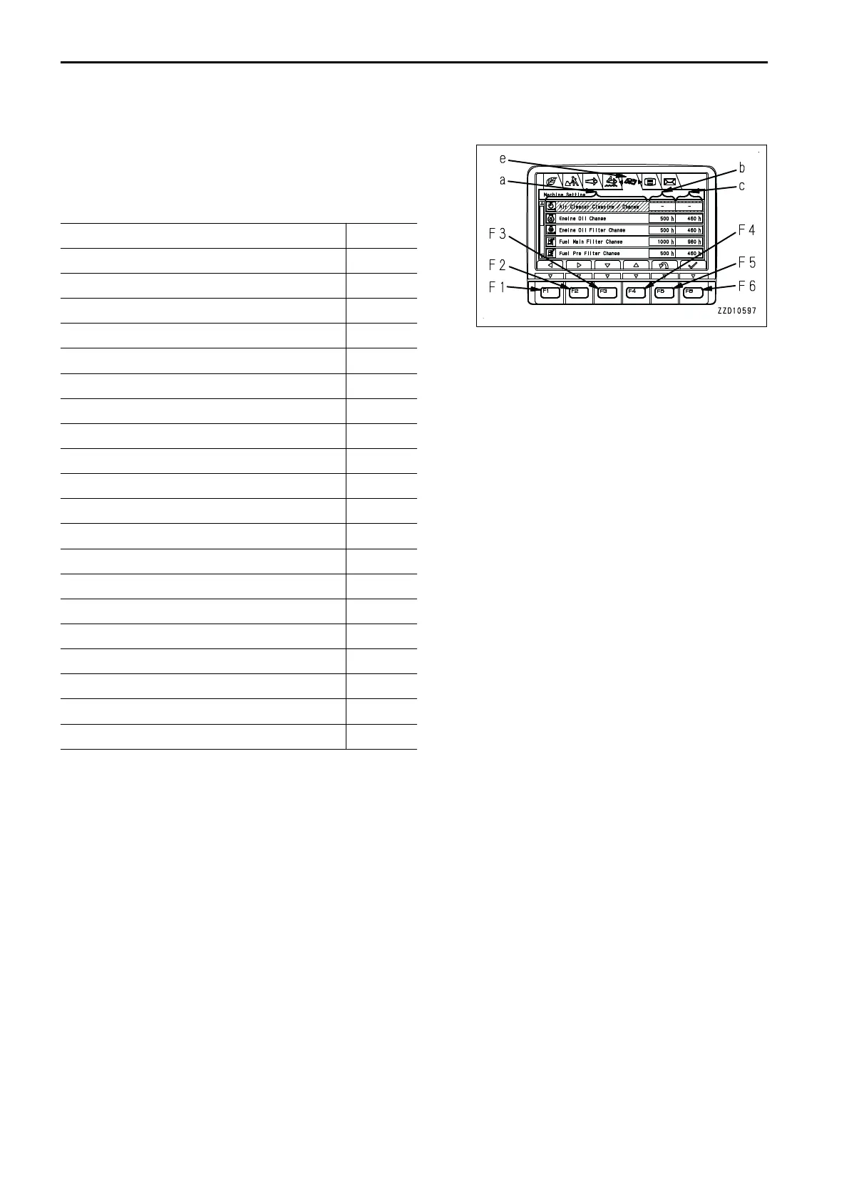 The items on the maintenance display are as follows.