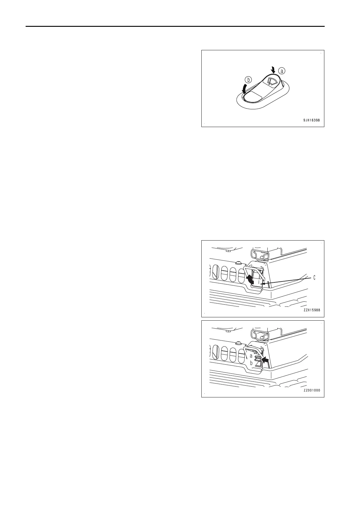 • When cover (C) is closed, the engine shutdown secondary switch automatically returns to the normal