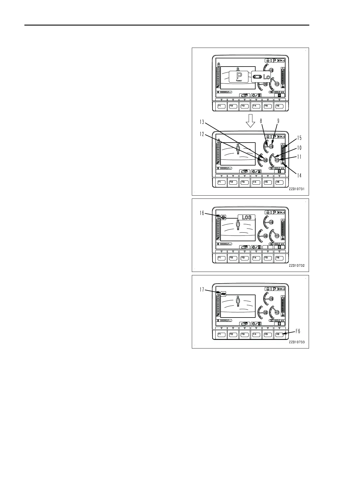 • Hydraulic oil temperature gauge (13)