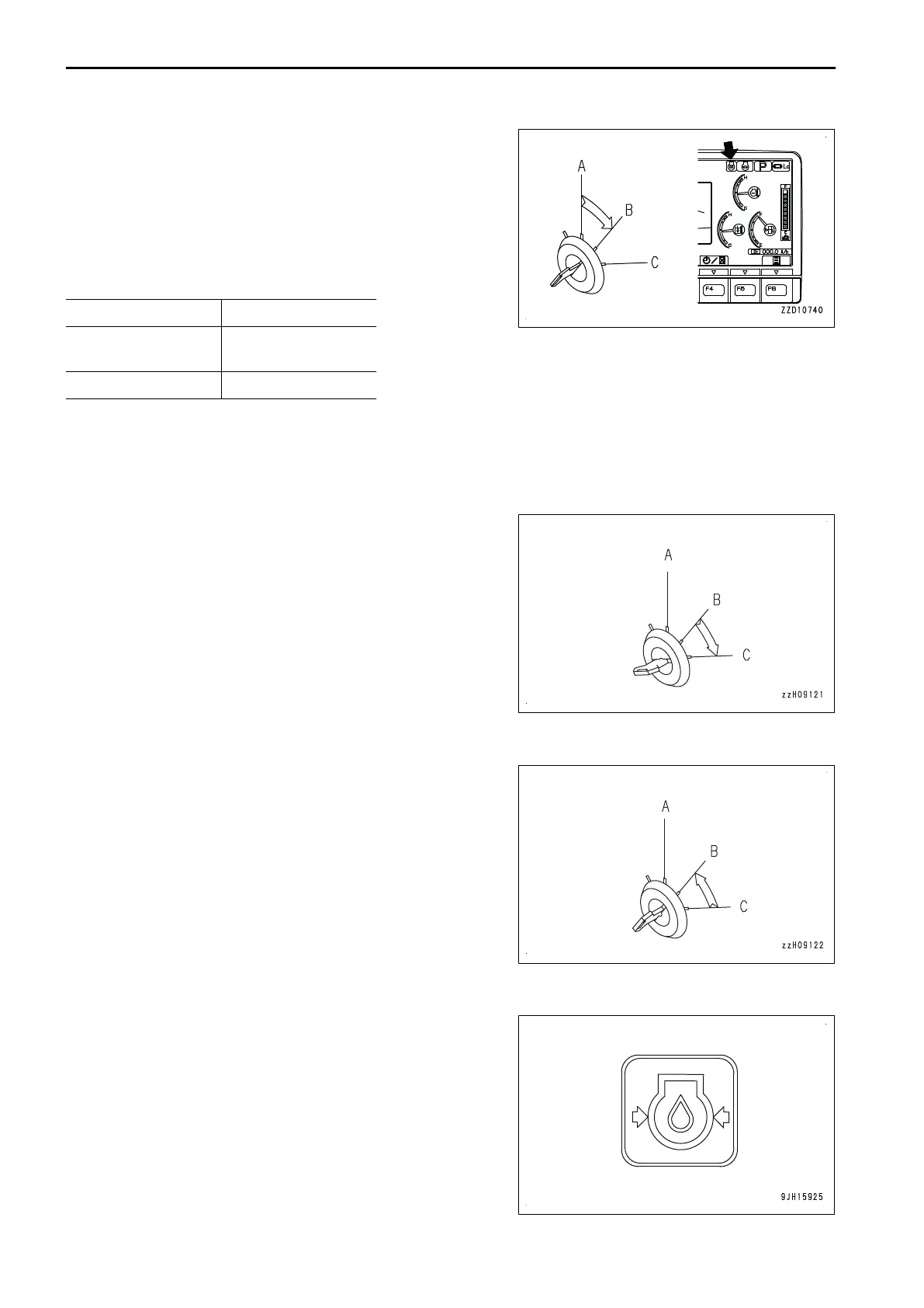 heating has been completed, turn the key in starting switch (3) to START position (C) and start the engine.