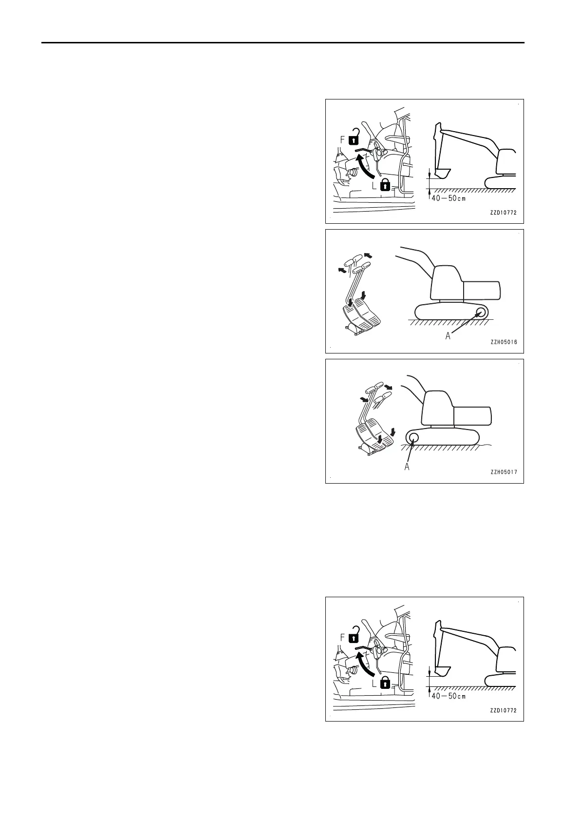 In addition, if the undercarriage is packed with mud and the machine travel speed is not normal, remove the soil