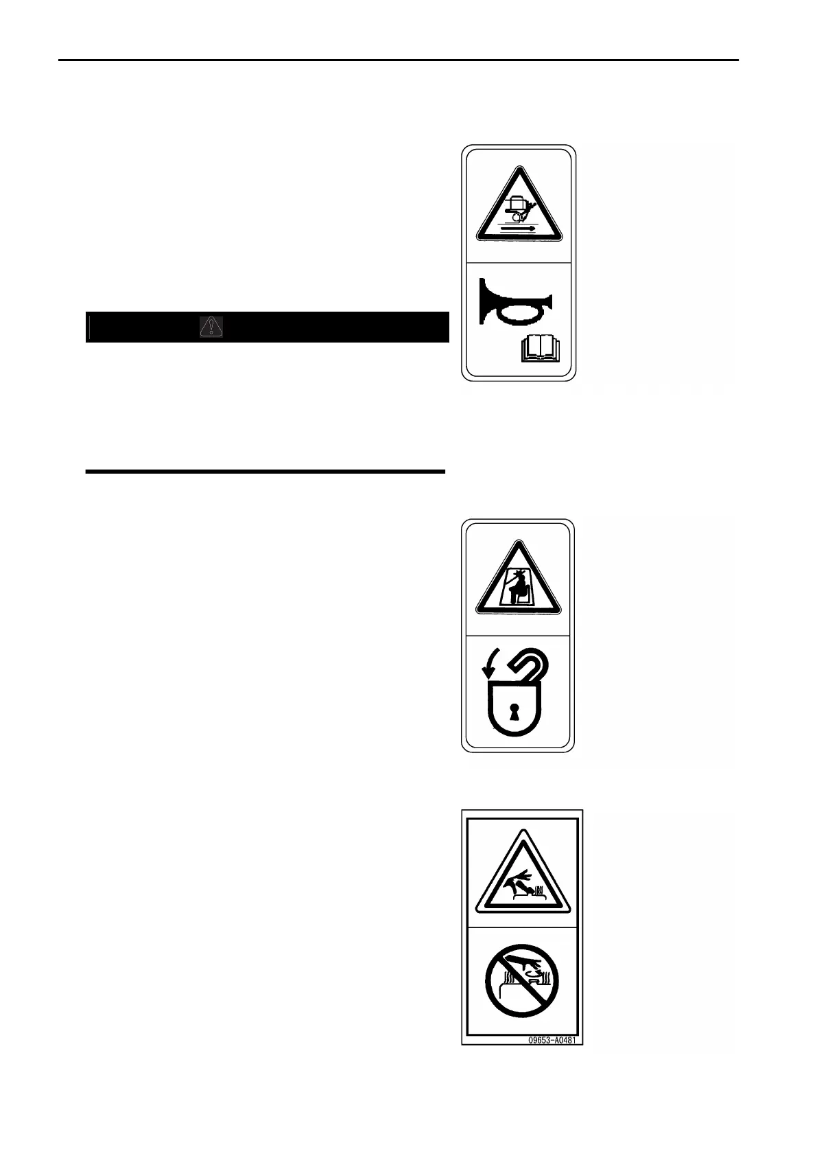 • Never remove the radiator cap or hydraulic tank oil filler