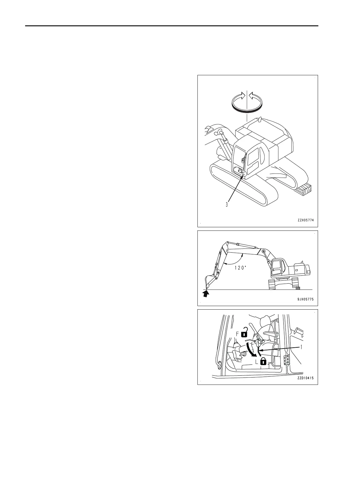 Swing the upper structure slowly so that water drain holes
