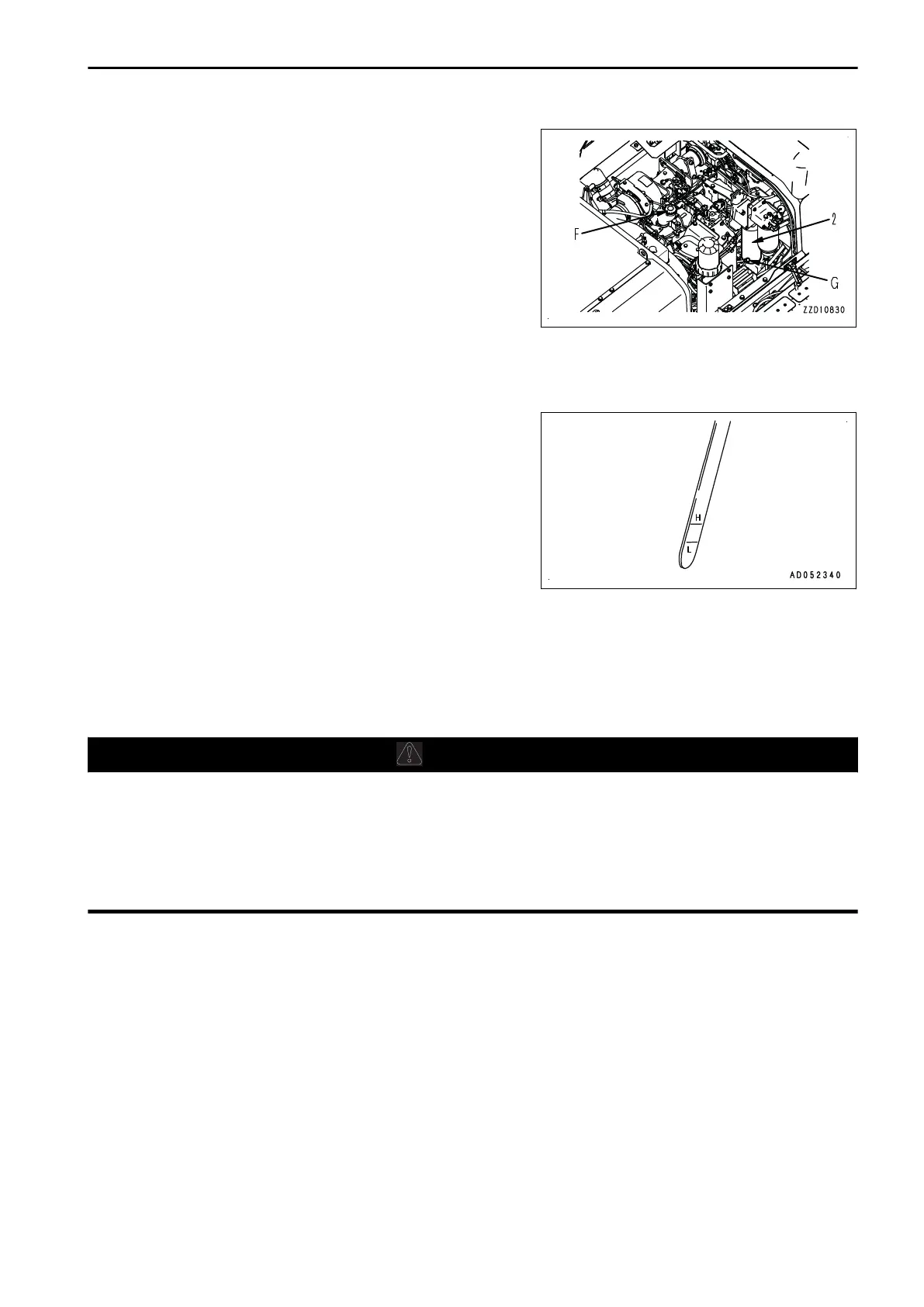 When the ambient temperature is low, water or emulsified matter may stick to the dipstick, oil filler cap, etc. or