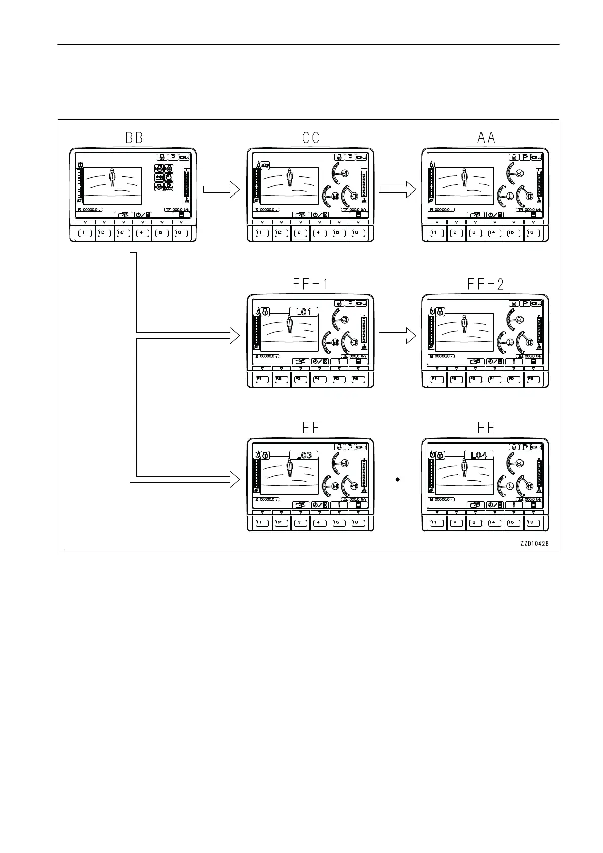 • After displaying warning screen FF-(1) for 2 seconds, the screen automatically changes to warning screen
