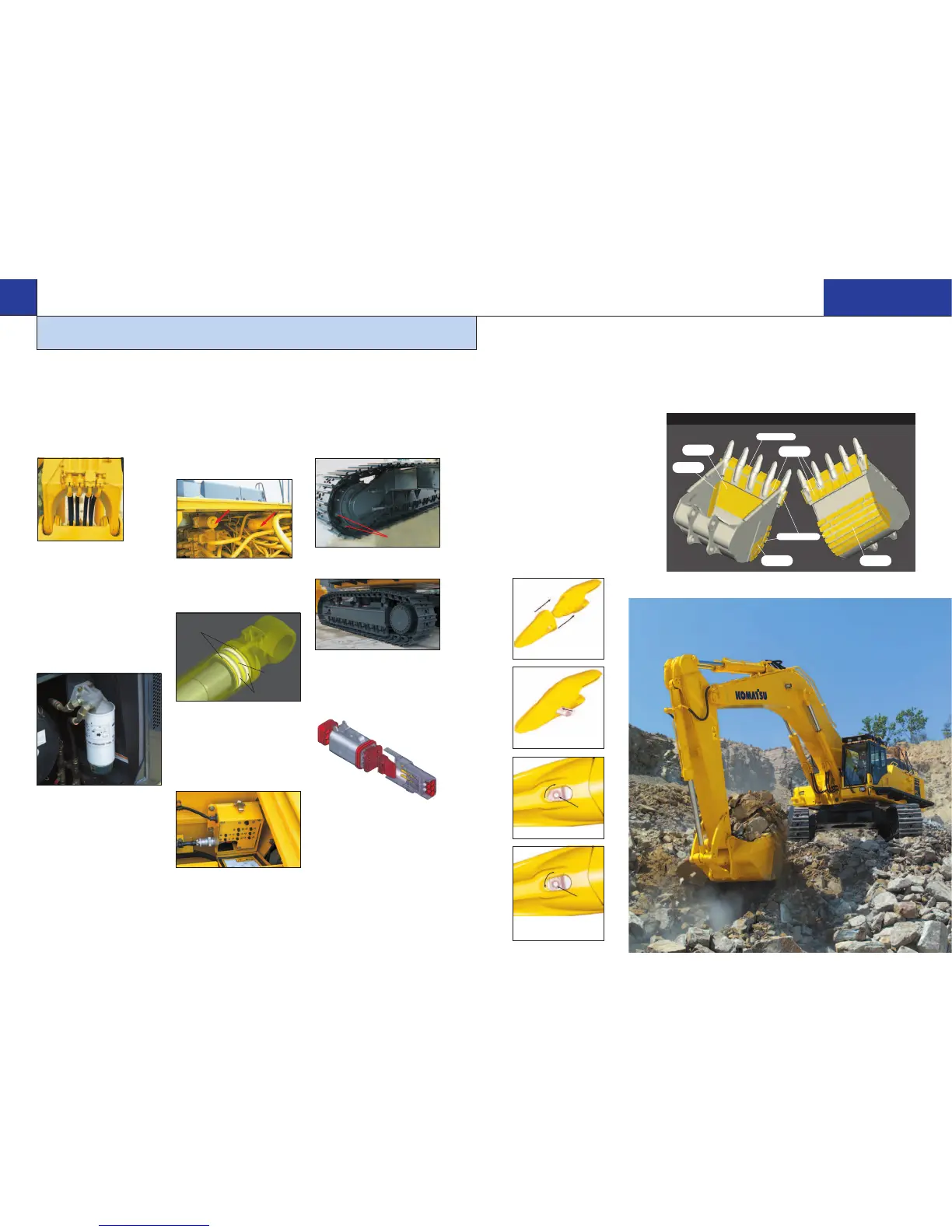 Koma-hard materials* provide excellent wear resistance. Combined with adoption of long-life KMAX teeth, durability of bucket