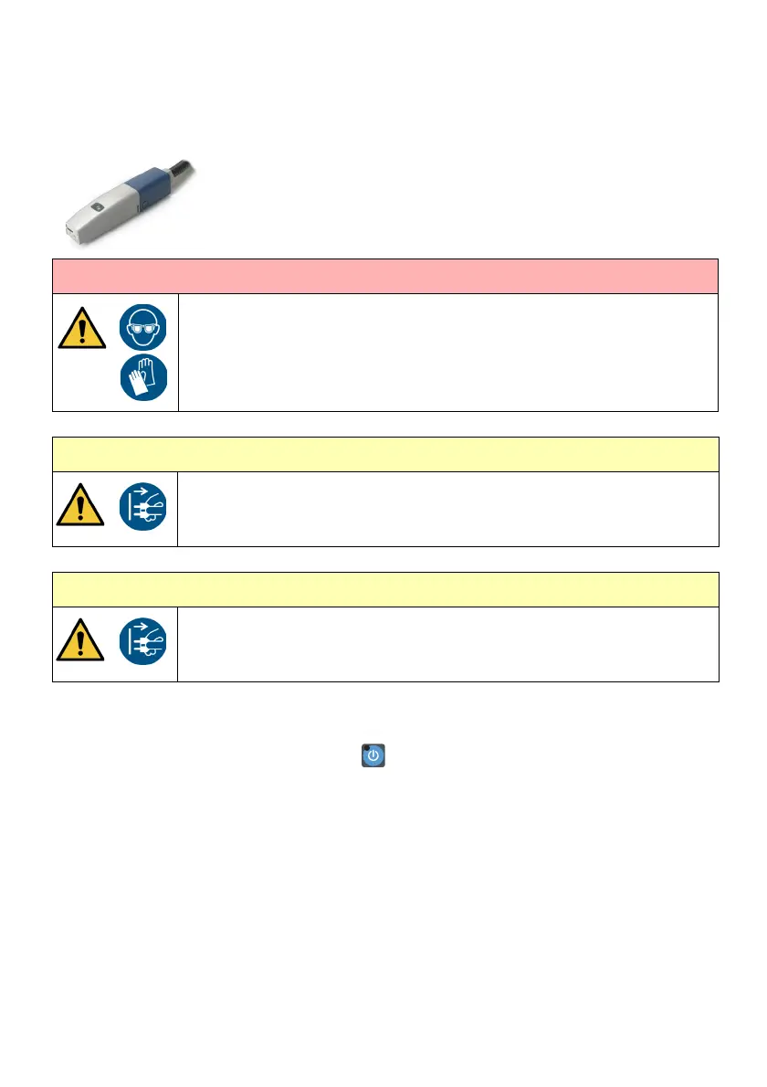Wear protective equipment such as gloves and glasses when near the