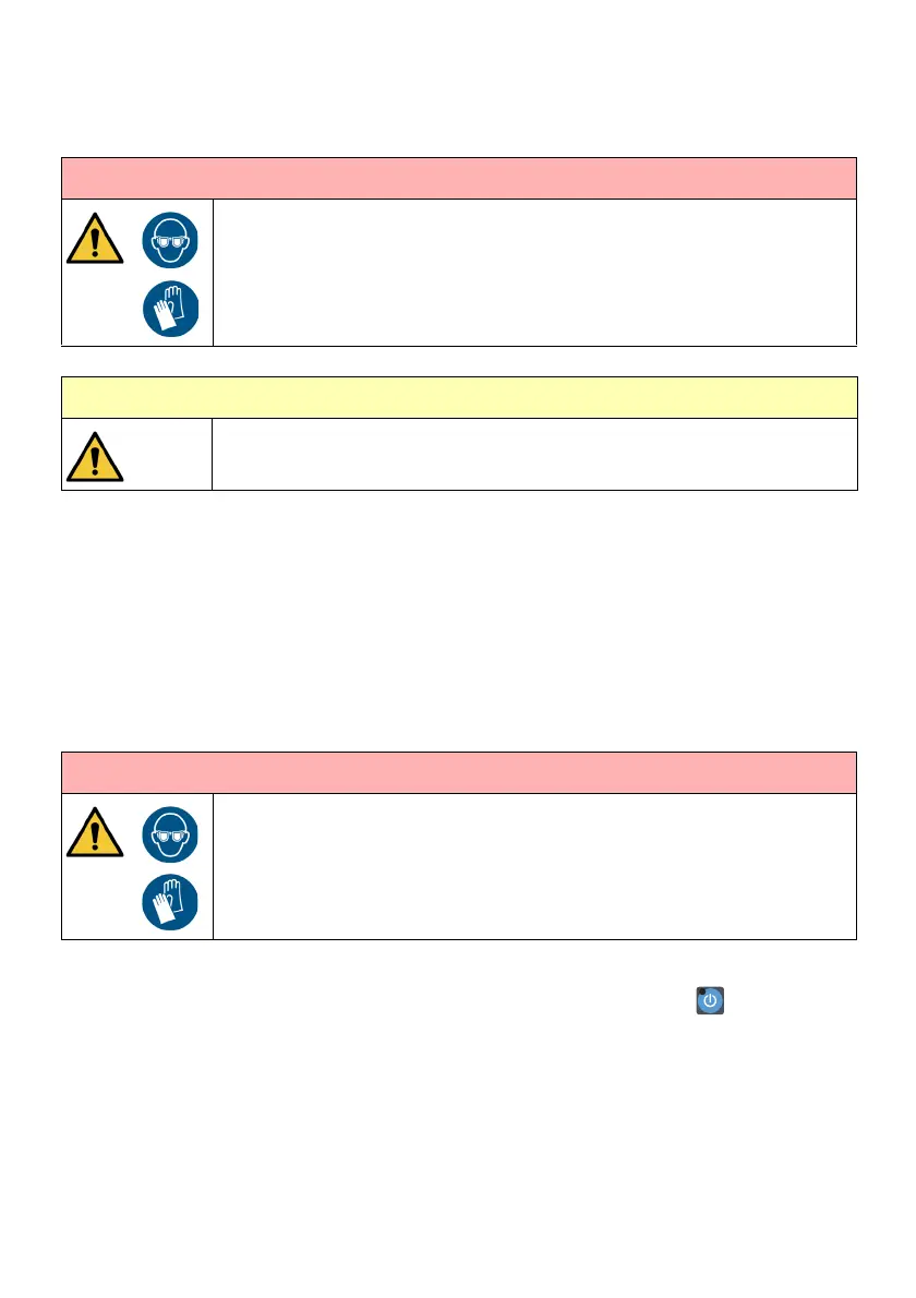 Wear protective equipment such as gloves and glasses when near the