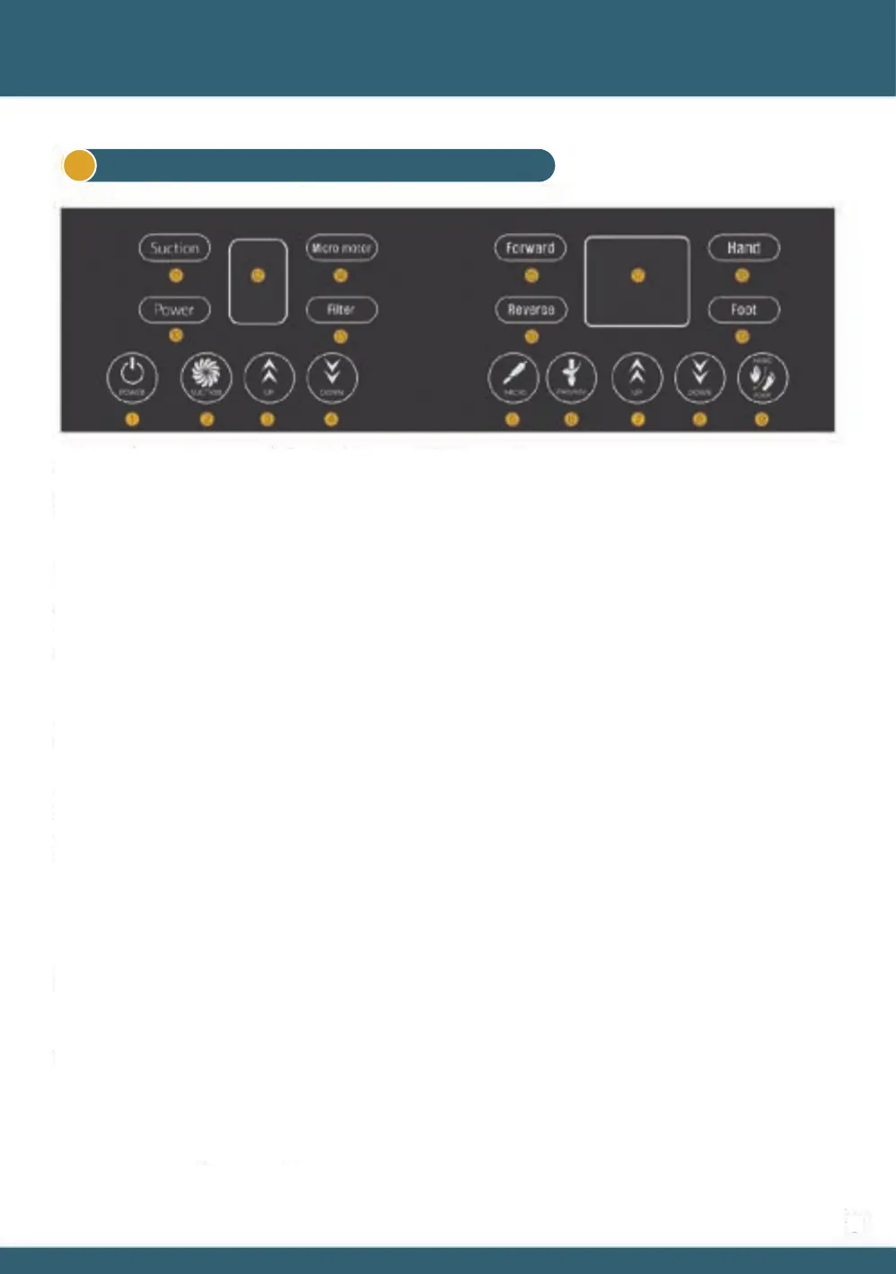 ③ UP & ④ DOWN : Suction level control button, level is displayed in ⑫.