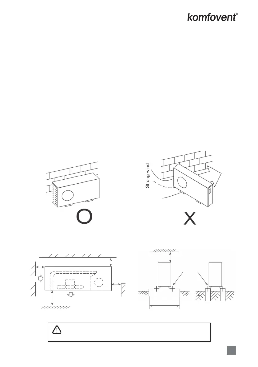 • If the location is exposed to strong winds (for example: near a seaside), the unit must be placed against the