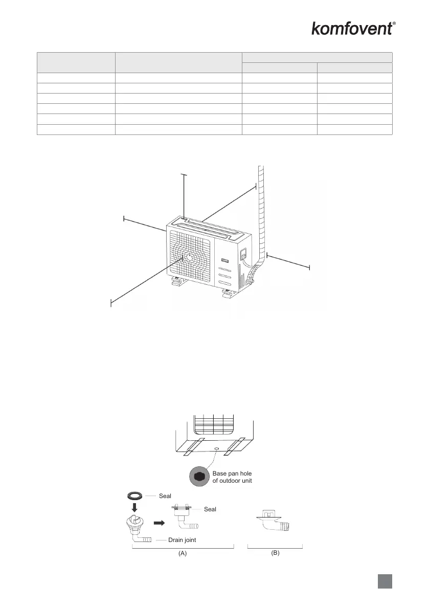 NOTE: The minimum distance between the outdoor unit and walls described in the installation guide does not