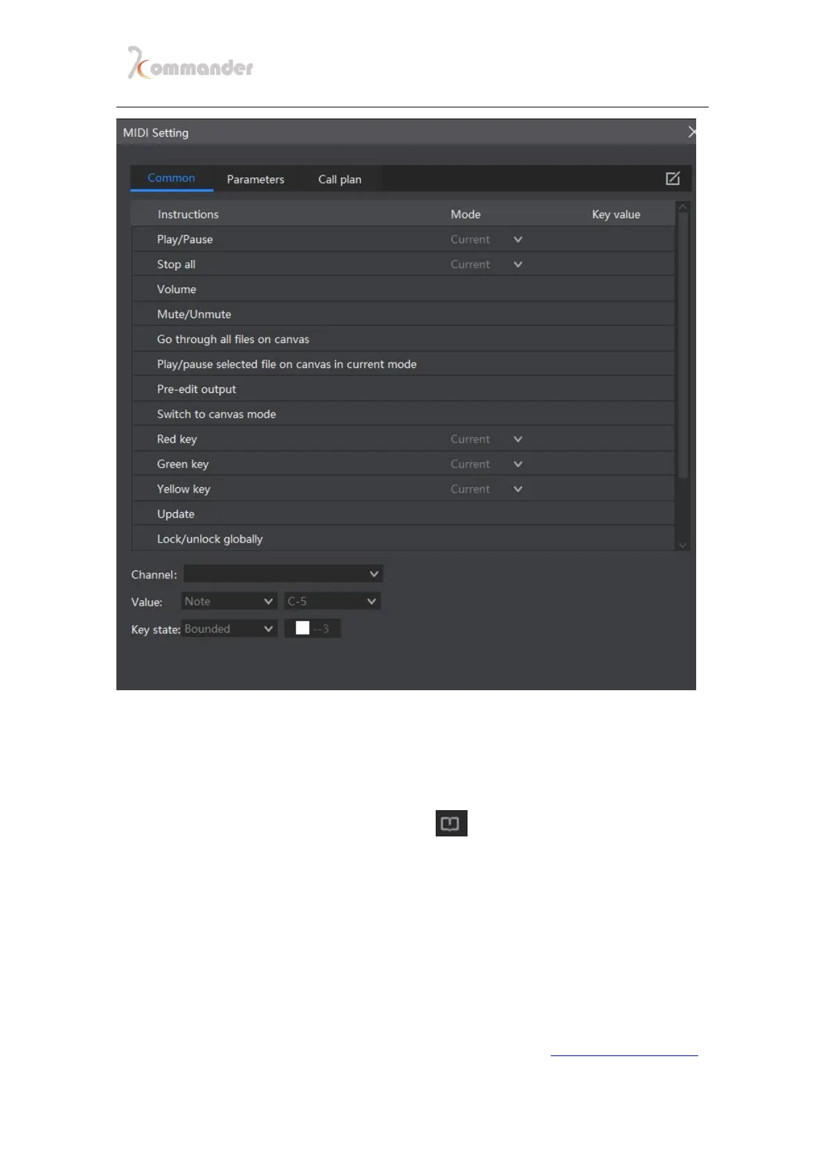 3. In the list instructions are listed that support midi control, and the key