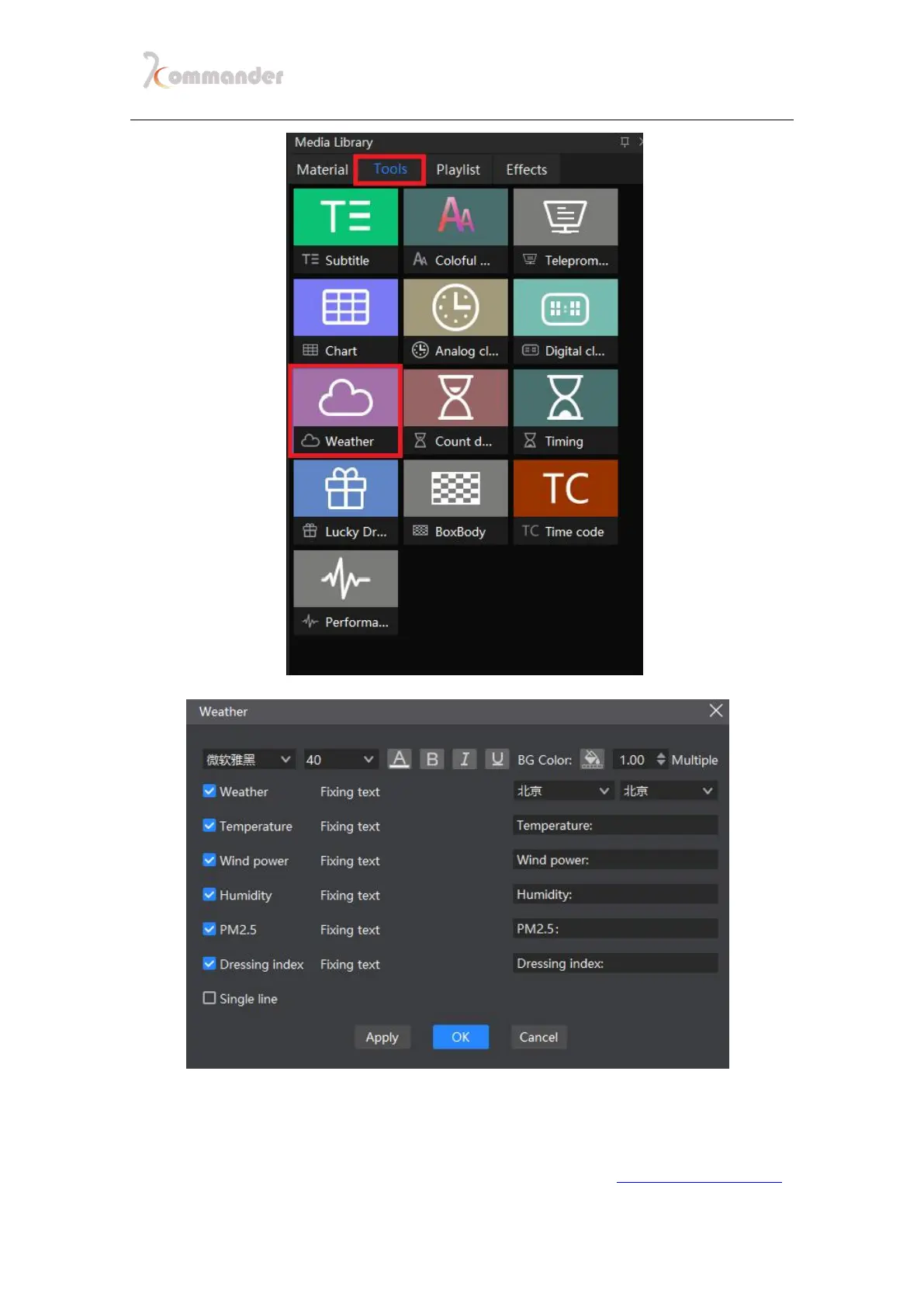 Note: Weather requires internet access