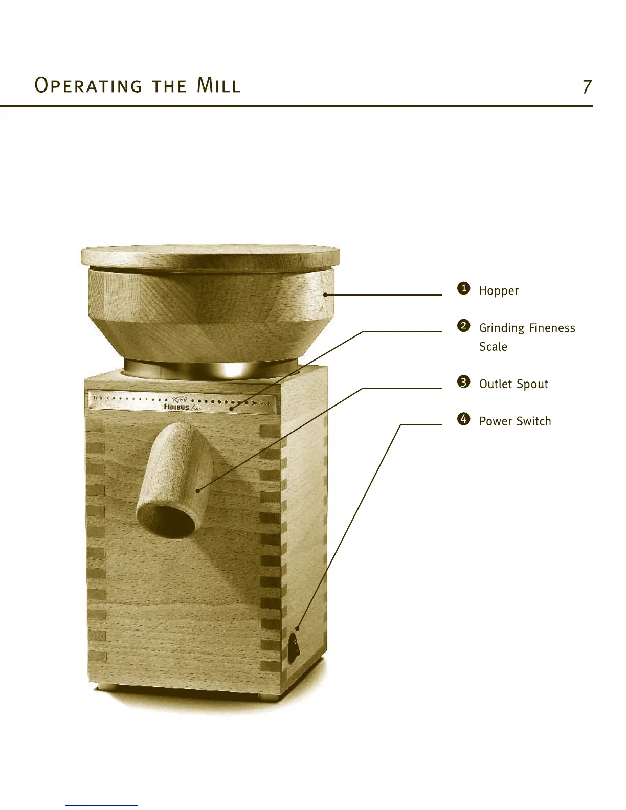 Komo Fidibus Medium - Grain Mill External Features; Hopper and Grinding Fineness Scale