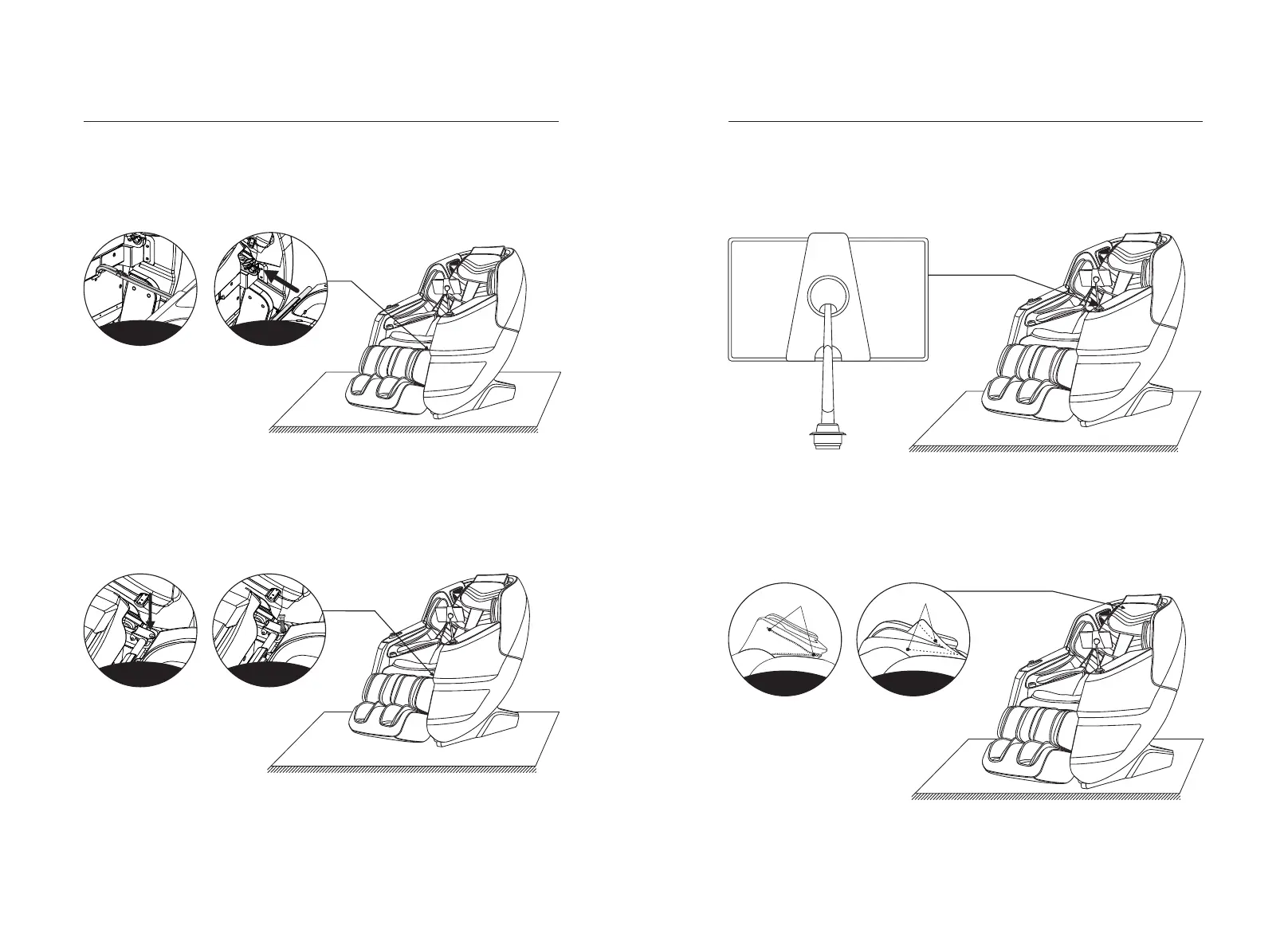 ·Fasten the legrest to the massage chair with two M4 screws (one on each side).