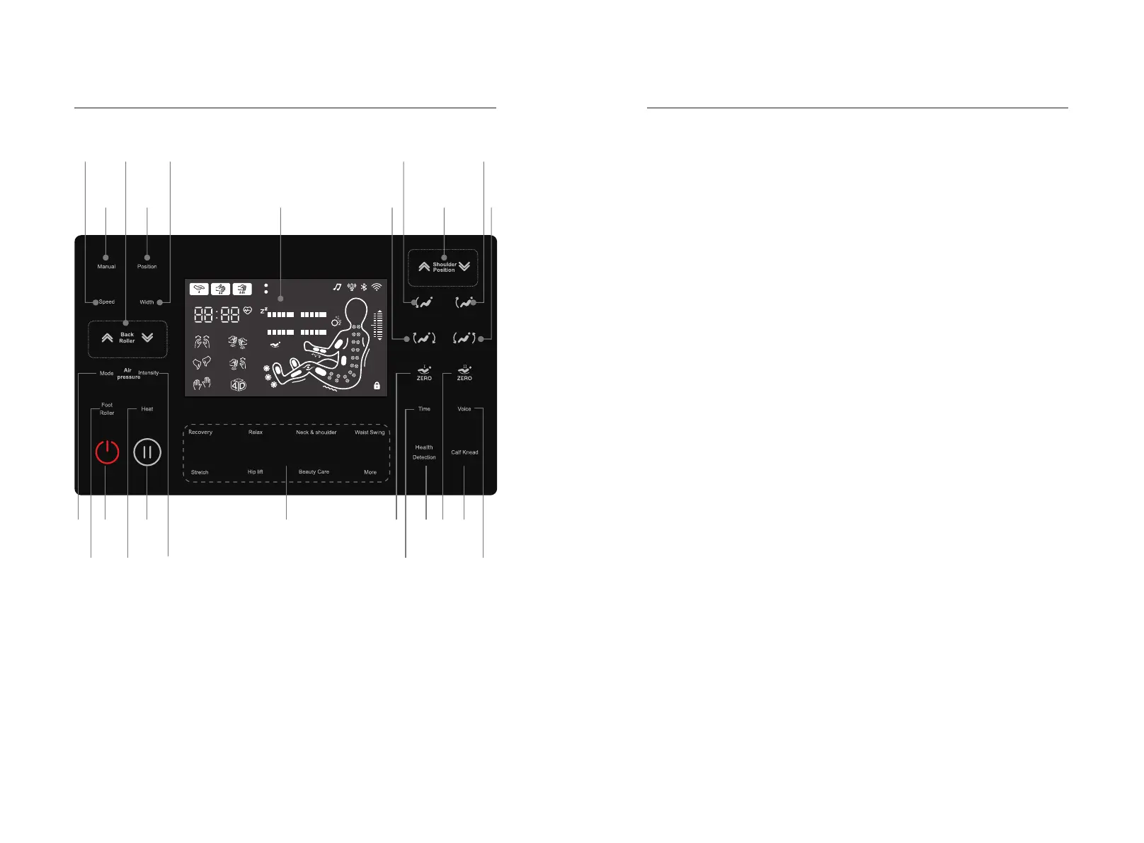 ·Turn on / off the pneumatic massage function.