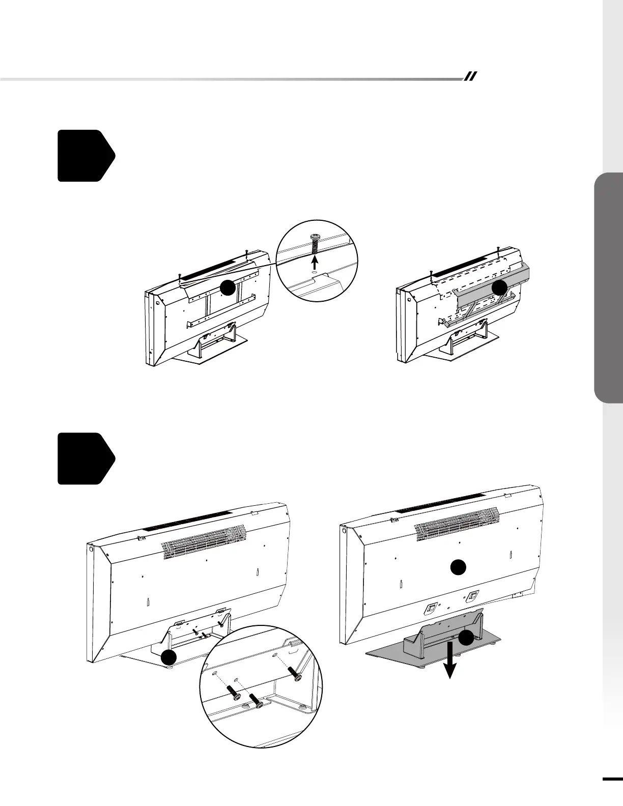 Retirez le support de montage (D) a l'arriere du foyer (C) en devissant les deux vis en haut