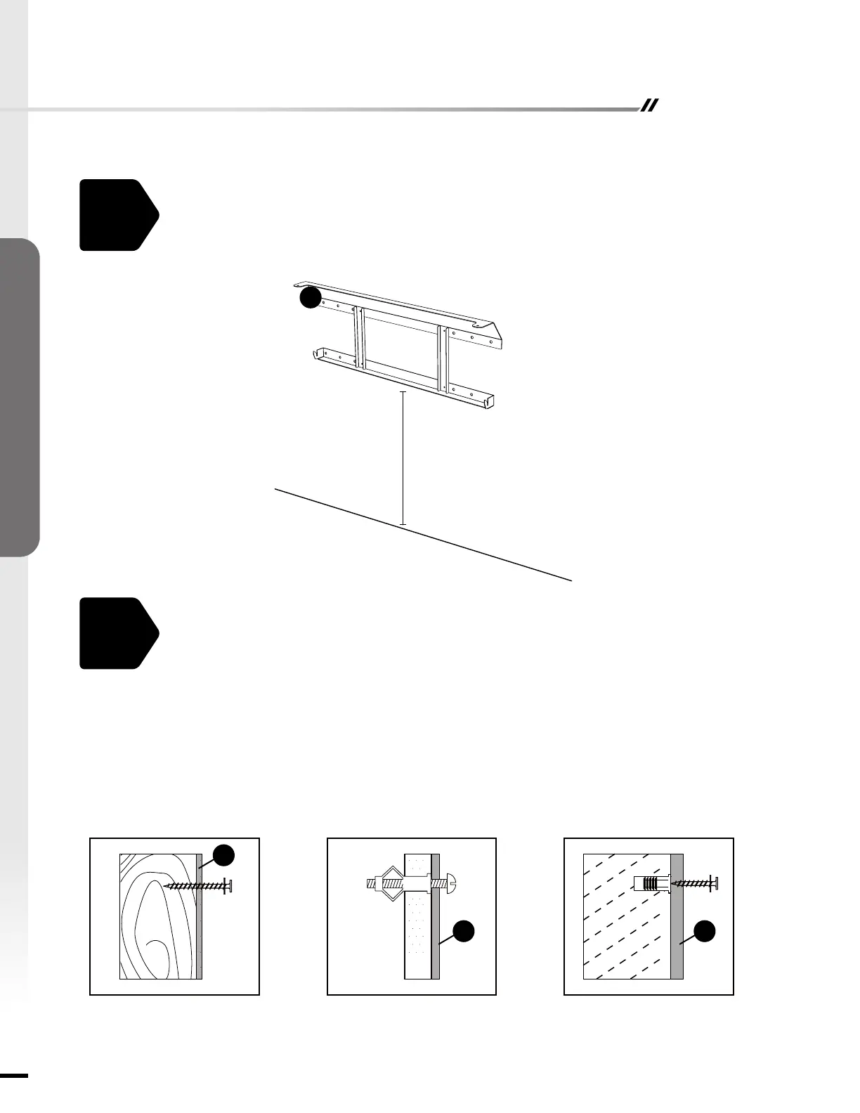 Choisissez un emplacement sur le mur pour xer le support de montage (D). Positionner