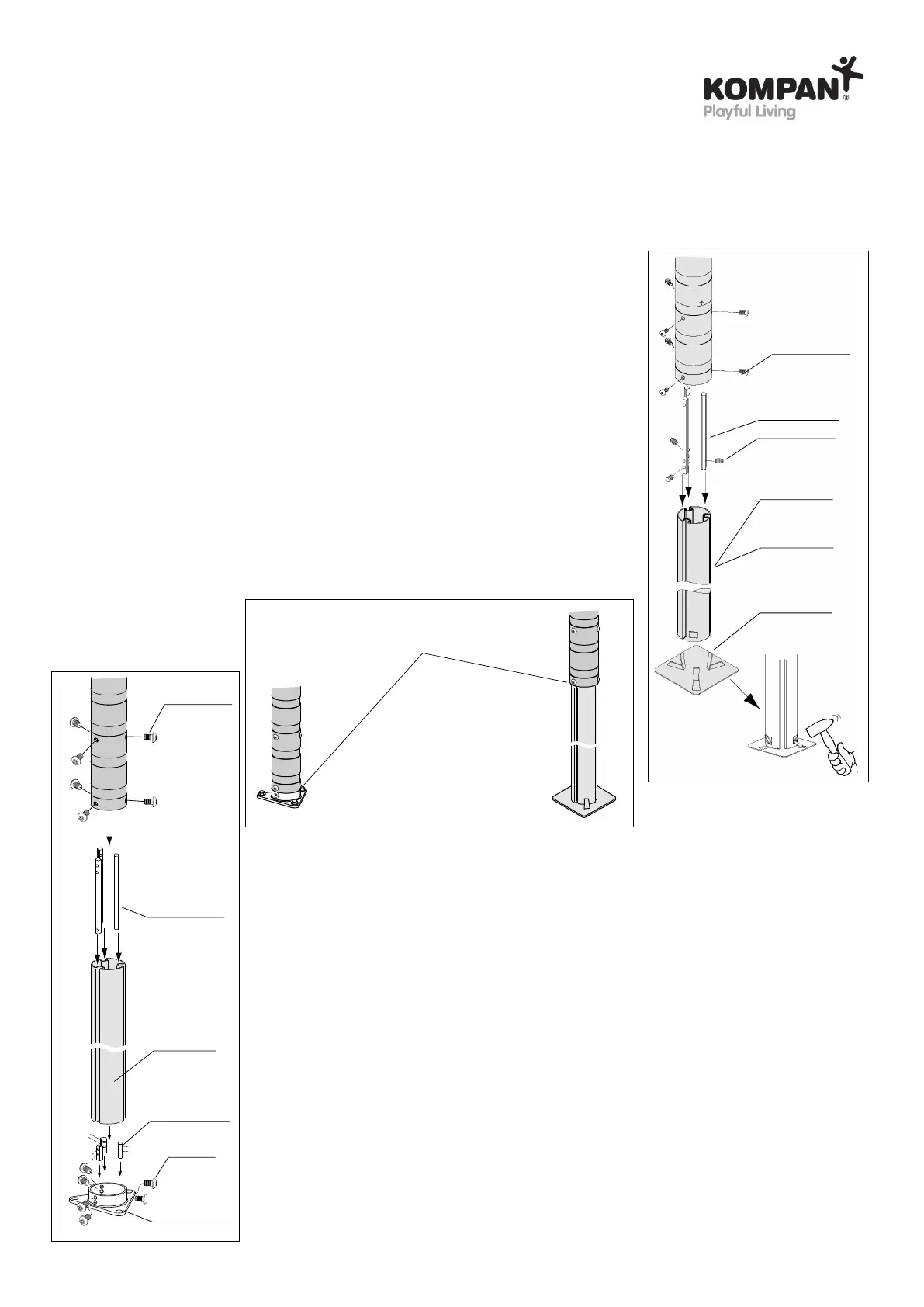The KOMPAN ELEMENTS in-ground footing consists of a steel footing profile with 3