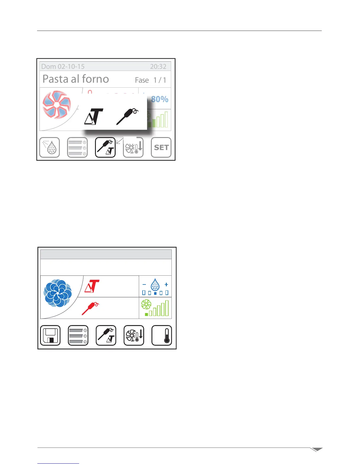 The ΔT mode, instead, determines the temperature of the cooking chamber based on the tem-