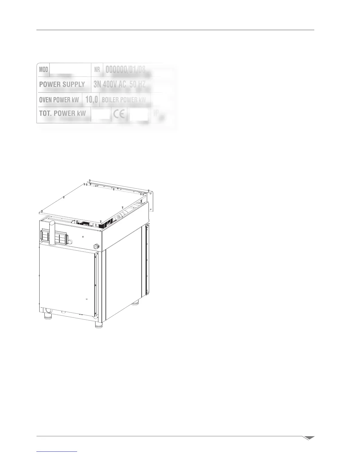 The oven is supplied with cable 400V 3N;