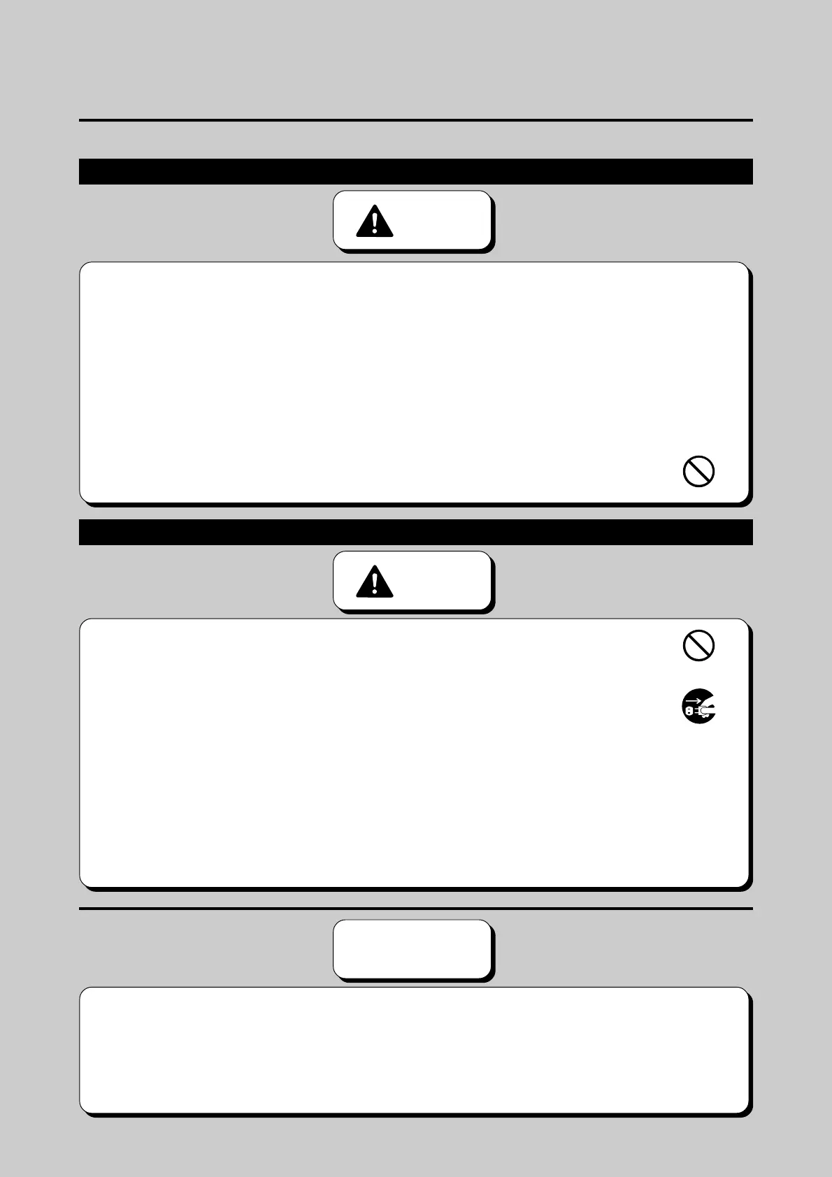 •Do not remove labels of “WARNING”, “CAUTION”, etc. attached to the product.