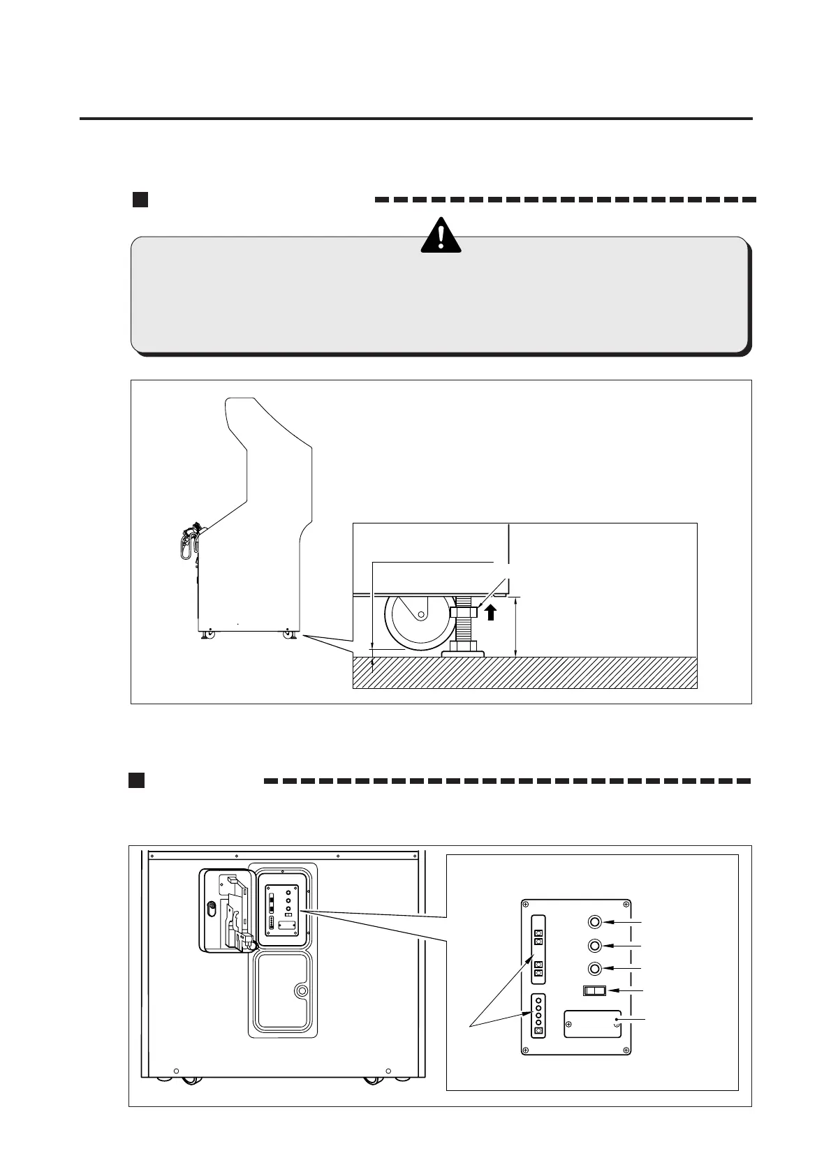 •Lower the 4 adjusters onto the floor. Make sure that the machine is stable