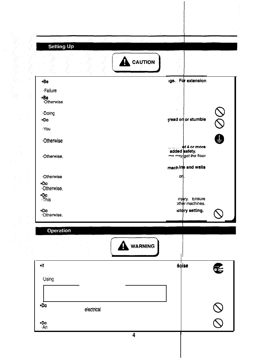 emitted from the machine, Immediately turn OFF the main power switch and unplug