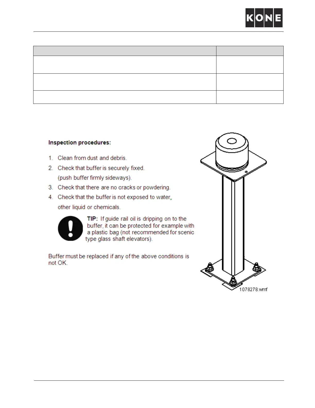 Kone MX10 - Maintenance Procedure for Polyurethane Buffers