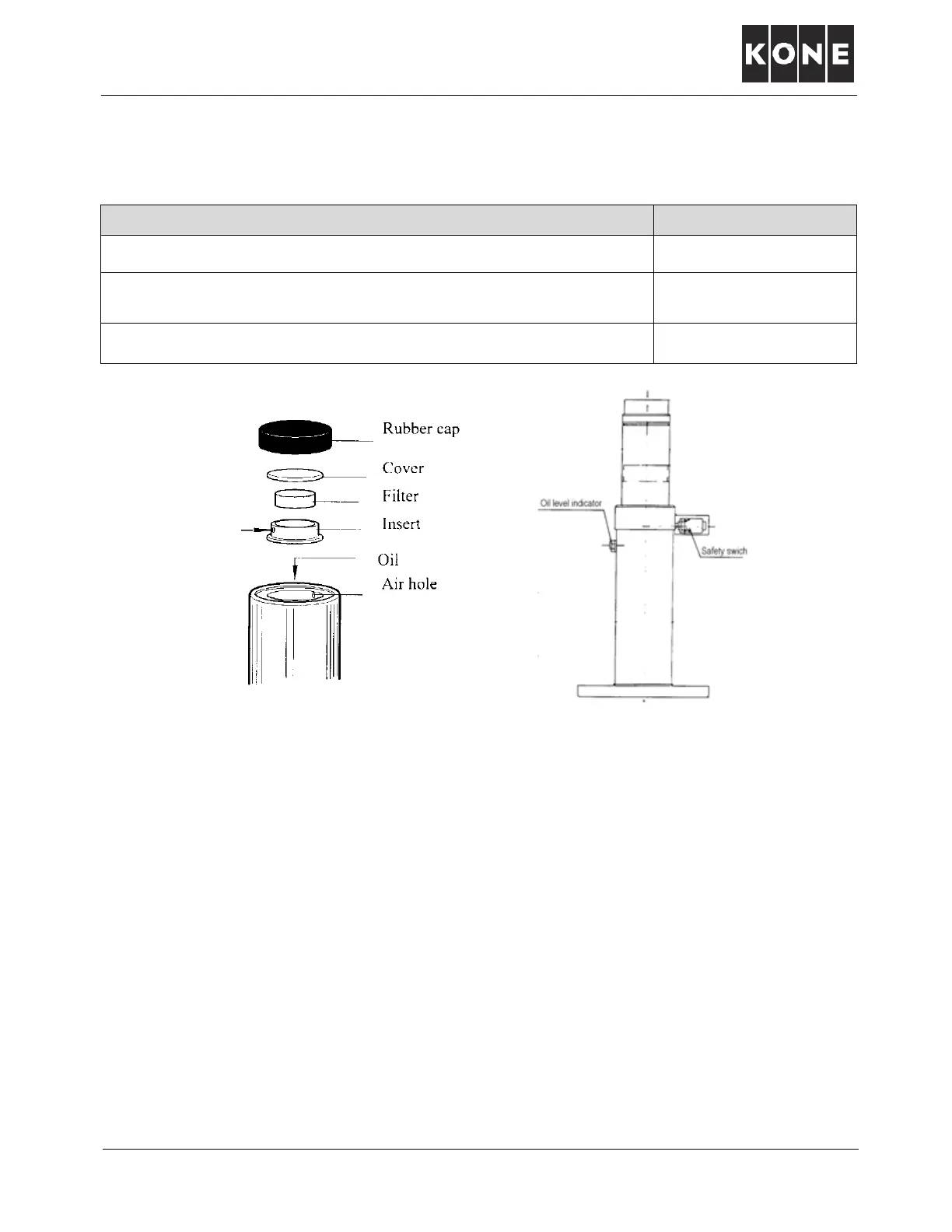 - Install the piston top parts and let the buffer rest (piston compressed 40...50 mm).
