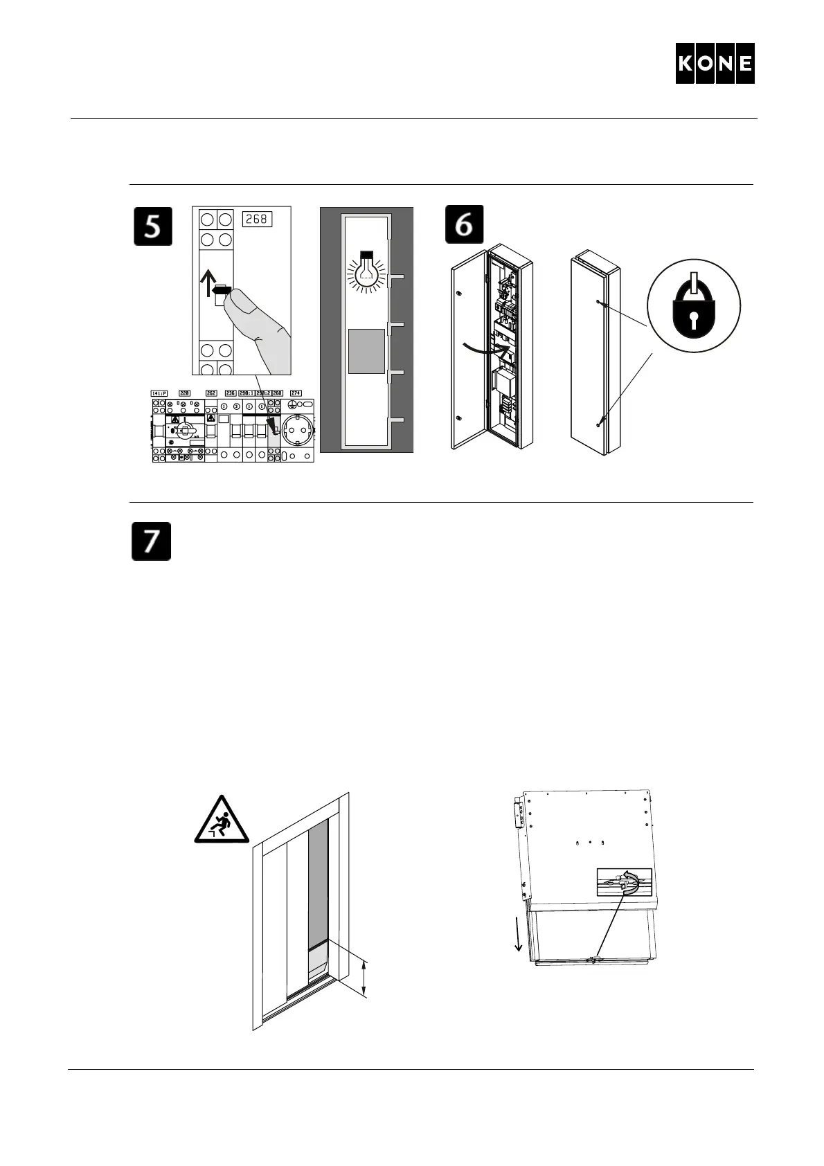 1. Open the landing doors with emergency opening ke