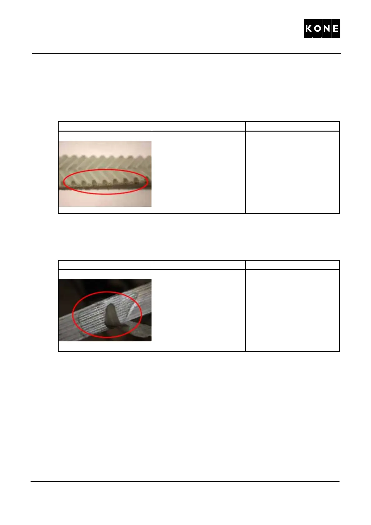 – Belt tooth abrasion / missing teeth