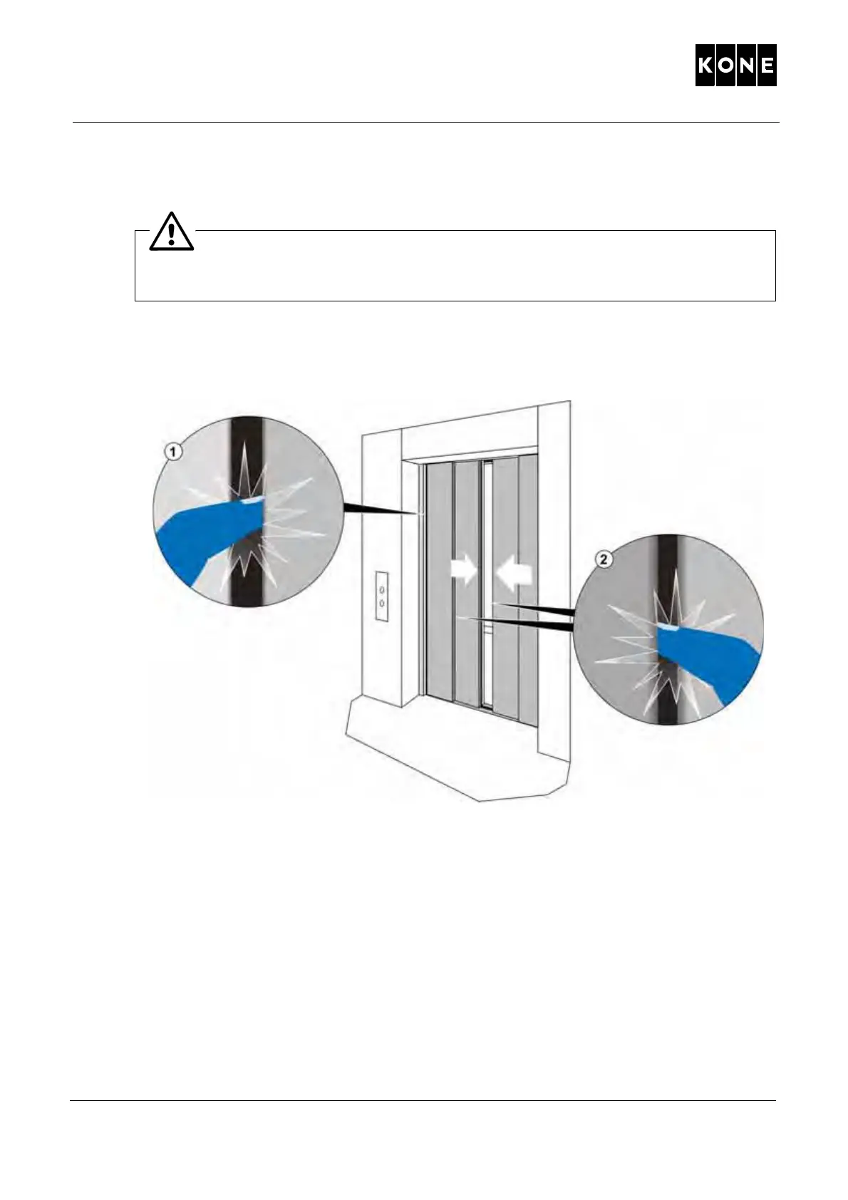 WARNING! Do not stand too close to the elevator doors. Clothing or fingers may get