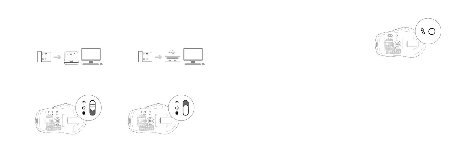 2. Select 2.4GHz mode on the connection mode slider underneath the mouse to connect via dongle.