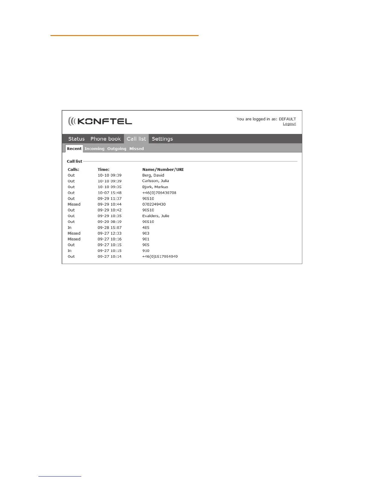 Select one of the tabs Incoming, Outgoing or Missed to filter the list.