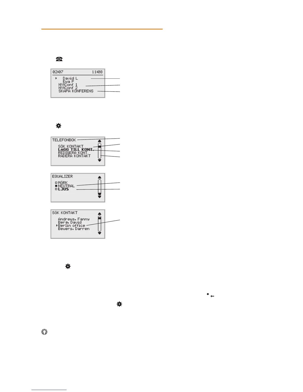 corresponds to the position of the option in the menu (e.g. 2 to open PHONEBOOK