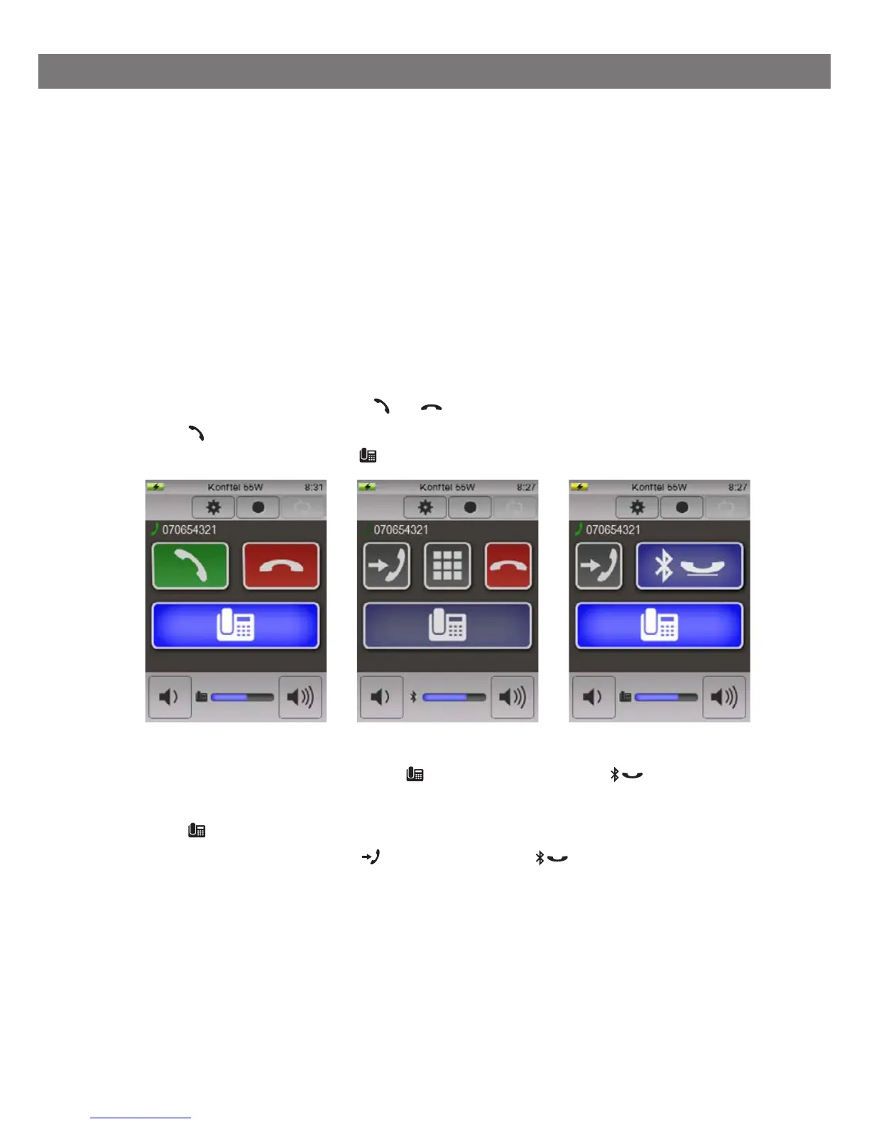 The Bluetooth-connected mobile phone starts to ring. The ring signals are audible from the Konftel